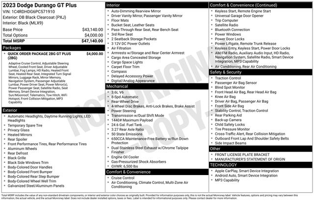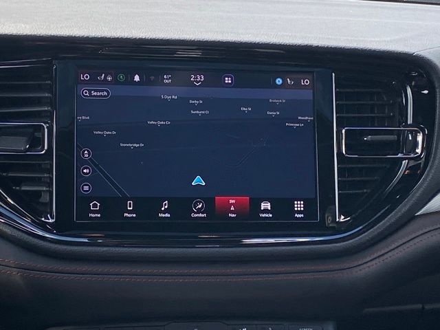 GPS Navigation, 1-Year Trial (Registration Required), 10.1" Touchscreen Display, 115V Auxiliary Power Outlet, 180 Amp Alternator, 3.27 Rear Axle Ratio, 3rd row seats: split-bench, 4-Wheel Disc Brakes, 4G LTE Wi-Fi Hot Spot, 6 Speakers, 7 & 4 Pin Wiring Harness, ABS brakes, Adaptive Cruise Control w/Stop, Air Conditioning, Alloy wheels, AM/FM radio: SiriusXM, Apple CarPlay, Apple CarPlay/Android Auto, Auto-Dimming Exterior Driver Mirror, Auto-dimming Rear-View mirror, Auto-leveling suspension, Automatic temperature control, Black Roof Rails, Brake assist, Bumpers: body-color, Class IV Receiver Hitch, Cloth Bucket Seats w/Shift Insert, Compass, Connected Travel & Traffic Services, Delay-off headlights, Disassociated Touchscreen Display, Driver door bin, Driver vanity mirror, Dual front impact airbags, Dual front side impact airbags, Dual Remote USB Port - Charge Only, Electronic Stability Control, Exterior Mirrors w/Heating Element, Exterior Mirrors w/Memory, Exterior Mirrors w/Supplemental Signals, Floor Console w/Leather Armrest, Four wheel independent suspension, Front anti-roll bar, Front Bucket Seats, Front Center Armrest w/Storage, Front dual zone A/C, Front License Plate Bracket, Front reading lights, Full Speed Forward Collision Warning Plus, Fully automatic headlights, Garage door transmitter, Global Telematics Box Module (TBM), Gloss Black Exterior Mirrors, Google Android Auto, GPS Antenna Input, HD Radio, Heated door mirrors, Heated front seats, Heated Second Row Seats, Heated steering wheel, Heavy-Duty Engine Cooling, Illuminated entry, Integrated Center Stack Radio, Integrated Roof Rail Crossbars, Integrated Voice Command w/Bluetooth, Knee airbag, Leather steering wheel, Leather Trimmed Bucket Seats, Leather Wrapped Door Panels, LED Auxiliary Low Beam & Turn Signal, Low tire pressure warning, Manufacturer's Statement of Origin, Occupant sensing airbag, Outside temperature display, Overhead airbag, Overhead console, Panic alarm, ParkView Rear Back-Up Camera, Passenger door bin, Passenger vanity mirror, Power 6x9 Multi-Function Foldaway Mirrors, Power 8-Way Driver Memory 8-Way Passenger Seats, Power door mirrors, Power driver seat, Power Driver/Passenger 4-Way Lumbar Adjust, Power Liftgate, Power steering, Power Sunroof, Power Tilt & Telescopic Steering Column, Power windows, Premium LED Fog Lamps, Quick Order Package 2BG GT Plus, Radio data system, Radio: Uconnect 4 w/8.4" Display, Radio: Uconnect 5 Nav w/10.1" Display, Radio/Driver Seat/Mirrors Memory, Rear air conditioning, Rear anti-roll bar, Rear Load Leveling Suspension, Rear reading lights, Rear seat center armrest, Rear window defroster, Rear window wiper, Red Accent Stitching, Remote keyless entry, SiriusXM Guardian - Included Trial (B), SiriusXM Radio Service, SiriusXM Satellite Radio, SiriusXM w/360L, Speed control, Speed-sensing steering, Speed-Sensitive Wipers, Split folding rear seat, Spoiler, Sport steering wheel, Steering wheel mounted audio controls, Tachometer, Telescoping steering wheel, Tilt steering wheel, Traction control, Trailer Brake Control, Trip computer, USB Host Flip, Variably intermittent wipers, Ventilated Front Seats, Voltmeter, Wheels: 20" x 8.0" Fine Silver, GPS Navigation.