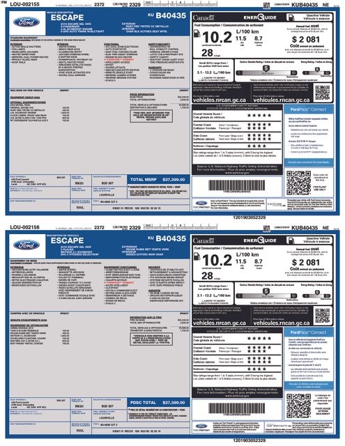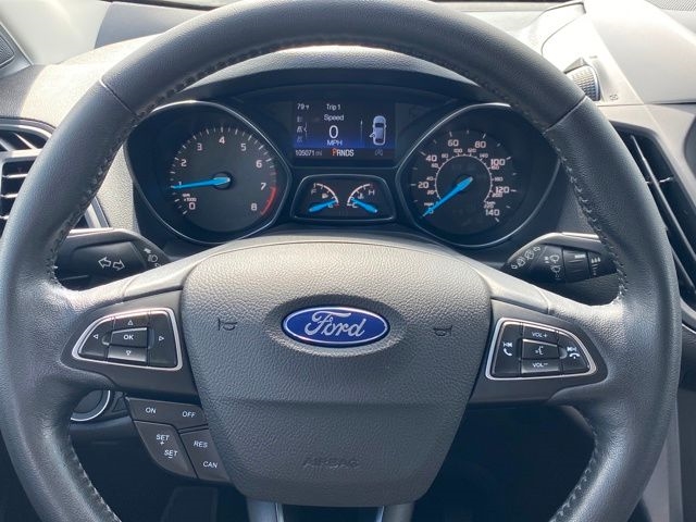 3.51 Axle Ratio, 4-Wheel Disc Brakes, 6 Speakers, ABS brakes, Air Conditioning, Alloy wheels, AM/FM radio: SiriusXM, AppLink/Apple CarPlay and Android Auto, Automatic temperature control, Brake assist, Bumpers: body-color, Compass, Delay-off headlights, Driver door bin, Driver vanity mirror, Dual front impact airbags, Dual front side impact airbags, Electronic Stability Control, Emergency communication system: SYNC 3 911 Assist, Exterior Parking Camera Rear, FordPass Connect, Four wheel independent suspension, Front anti-roll bar, Front Bucket Seats, Front Center Armrest, Front dual zone A/C, Front fog lights, Front reading lights, Fully automatic headlights, Heated door mirrors, Heated front seats, Illuminated entry, Knee airbag, Leather Shift Knob, Low tire pressure warning, Occupant sensing airbag, Outside temperature display, Overhead airbag, Overhead console, Panic alarm, Passenger door bin, Passenger vanity mirror, Power door mirrors, Power driver seat, Power Liftgate, Power steering, Power windows, Radio data system, Radio: AM/FM Stereo w/MP3 Capable, Rear anti-roll bar, Rear Parking Sensors, Rear seat center armrest, Rear window defroster, Rear window wiper, Remote keyless entry, Roof rack: rails only, Security system, Speed control, Speed-sensing steering, Split folding rear seat, Steering wheel mounted audio controls, SYNC 3 Communications & Entertainment System, Tachometer, Telescoping steering wheel, Tilt steering wheel, Traction control, Trip computer, Variably intermittent wipers, Wheels: 17" Sparkle Silver-Painted Aluminum.