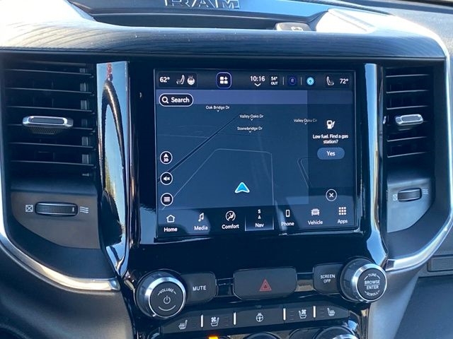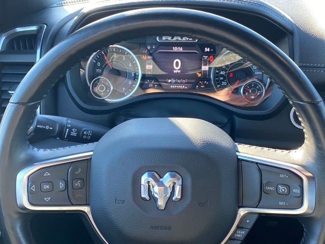 Navigation System, 10 Speakers, 3 Rear Seat Head Restraints, 3.21 Rear Axle Ratio, 4 Way Front Headrests, 4-Wheel Disc Brakes, 48V Belt Starter Generator, 4G LTE Wi-Fi Hot Spot, ABS brakes, Air Conditioning, Alloy wheels, AM/FM radio: SiriusXM with 360L, Apple CarPlay, Apple CarPlay/Android Auto, Audio memory, Auto-dimming door mirrors, Auto-Dimming Exterior Driver Mirror, Auto-dimming Rear-View mirror, Automatic temperature control, Brake assist, Bumpers: chrome, Chrome Exterior Mirrors, Compass, Connected Travel & Traffic Services, Connectivity - US/Canada, Convex Wide-Angle Exterior Mirror Insert, Delay-off headlights, Driver door bin, Driver Seat Memory, Driver vanity mirror, Dual front impact airbags, Dual front side impact airbags, Electronic Stability Control, Exterior Mirrors Courtesy Lamps, Exterior Mirrors w/Heating Element, Exterior Mirrors w/Memory, Exterior Mirrors w/Supplemental Signals, For Details, Visit DriveUconnect.com, For More Info, Call 800-643-2112, Front anti-roll bar, Front Center Armrest w/Storage, Front dual zone A/C, Front fog lights, Front License Plate Bracket, Front reading lights, Front Seat Back Map Pockets, Front wheel independent suspension, Fully automatic headlights, Garage door transmitter, Global Telematics Box Module (TBM), Google Android Auto, GPS Navigation, HD Radio, Heated door mirrors, Heated Front Seats, Heated front seats, Heated Steering Wheel, Heated steering wheel, Illuminated entry, Integrated Voice Command w/Bluetooth, Leather steering wheel, Leather Trim 40/20/40 Bench Seat, Low tire pressure warning, Manufacturer's Statement of Origin, Memory seat, Occupant sensing airbag, Outside temperature display, Overhead airbag, Overhead console, Panic alarm, ParkView Rear Back-Up Camera, Passenger door bin, Passenger vanity mirror, Power 2-Way Driver Lumbar Adjust, Power 2-Way Passenger Lumbar Adjust, Power 8-Way Driver & Passenger Seats, Power door mirrors, Power driver seat, Power passenger seat, Power steering, Power windows, Power-Folding Mirrors, Quick Order Package 27H Laramie, Radio data system, Radio: Uconnect 5 Nav w/8.4" Display, RAM Grille Badge - Chrome, Rear 60/40 Folding Seat, Rear anti-roll bar, Rear seat center armrest, Rear step bumper, Remote keyless entry, Security system, SiriusXM Radio Service, SiriusXM w/360L, Speed control, Split folding rear seat, Steering wheel mounted audio controls, Tachometer, Telescoping steering wheel, Tilt steering wheel, Traction control, Trip computer, Turn signal indicator mirrors, USB Host Flip, Variably intermittent wipers, Ventilated Front Seats, Ventilated front seats, Voltmeter, Wheels: 18" x 8" Aluminum Base Painted, Navigation System.