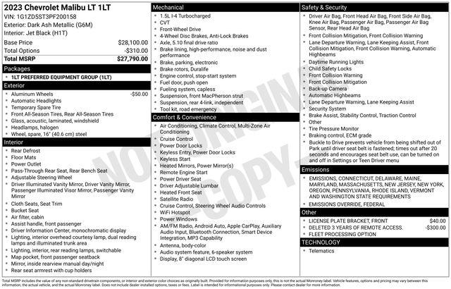 16" Aluminum Wheels, 6-Speaker Audio System Feature, Apple CarPlay/Android Auto, Exterior Parking Camera Rear, Heated Driver & Front Passenger Seats, Preferred Equipment Group 1LT, Radio: Chevrolet Infotainment 3 System, SiriusXM Radio, Speed control, Tilt steering wheel, Wireless Apple CarPlay/Android Auto, 17" Aluminum Wheels, 4-Wheel Disc Brakes, 6 Speakers, 6-Way Manual Front Passenger Seat Adjuster, 8-Way Power Driver Seat Adjuster, ABS brakes, Air Conditioning, Alloy wheels, AM/FM radio: SiriusXM, Auto High-beam Headlights, Automatic temperature control, Brake assist, Bumpers: body-color, Compass, Delay-off headlights, Deleted 3 Years of Remote Access, Driver door bin, Driver vanity mirror, Dual front impact airbags, Dual front side impact airbags, Electronic Stability Control, Emergency communication system: OnStar and Chevrolet connected services capable, Four wheel independent suspension, Front anti-roll bar, Front Bucket Seats, Front Center Armrest, Front dual zone A/C, Front License Plate Bracket, Front reading lights, Fully automatic headlights, Heated door mirrors, Heated front seats, Illuminated entry, Knee airbag, Low tire pressure warning, Occupant sensing airbag, Outside temperature display, Overhead airbag, Overhead console, Panic alarm, Passenger door bin, Passenger vanity mirror, Power door mirrors, Power Driver Lumbar Control Seat Adjuster, Power driver seat, Power steering, Power windows, Premium audio system: Chevrolet Infotainment 3 Plus, Premium Cloth Seat Trim, Radio data system, Rear anti-roll bar, Rear reading lights, Rear seat center armrest, Rear side impact airbag, Rear window defroster, Remote keyless entry, Security system, Split folding rear seat, Steering wheel mounted audio controls, Tachometer, Telescoping steering wheel, Traction control, Trip computer, Variably intermittent wipers, Voltmeter, One Owner, 16" Aluminum Wheels, 6-Speaker Audio System Feature, Apple CarPlay/Android Auto, Exterior Parking Camera Rear, Heated Driver & Front Passenger Seats, Preferred Equipment Group 1LT, Radio: Chevrolet Infotainment 3 System, SiriusXM Radio, Speed control, Tilt steering wheel, Wireless Apple CarPlay/Android Auto.