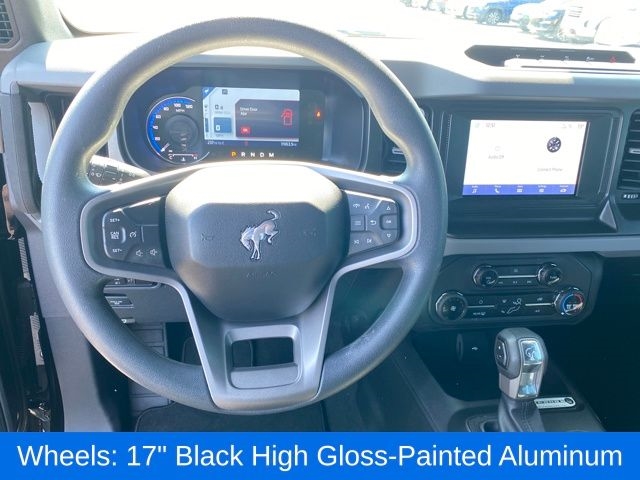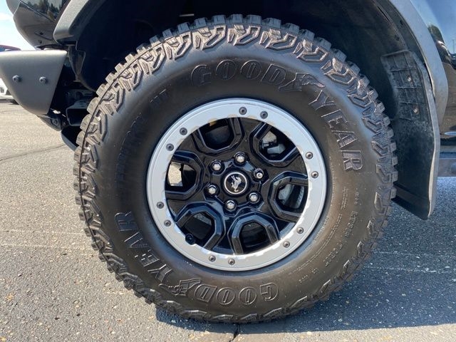 4.7 Final Drive Ratio, High Clearance Fender Flares, High Clearance Suspension, Position-Sensitive Bilstein Shock Absorbers, Sasquatch Package, Wheels: 17" Black High Gloss-Painted Aluminum, 4-Wheel Disc Brakes, 7 Speakers, ABS brakes, Air Conditioning, AM/FM radio: SiriusXM with 360L, AM/FM Stereo, Auto High-beam Headlights, Brake assist, Compass, Convertible HardTop, Convertible roof lining, Delay-off headlights, Driver door bin, Driver vanity mirror, Dual front impact airbags, Dual front side impact airbags, Electronic Stability Control, Emergency communication system: 911 Assist, Exterior Parking Camera Rear, Ford Performance Heavy-Duty Modular Front Bumper, Front anti-roll bar, Front Bucket Seats, Front Center Armrest, Front reading lights, Front wheel independent suspension, Fully automatic headlights, Glass rear window, Heated door mirrors, Illuminated entry, Integrated roll-over protection, Low tire pressure warning, Occupant sensing airbag, Outside temperature display, Overhead airbag, Overhead console, Panic alarm, Passenger door bin, Passenger vanity mirror, Power door mirrors, Power steering, Power windows, Radio data system, Radio: 6 Speakers w/Subwoofer Delete, Rear window defroster, Rear window wiper, Remote keyless entry, Security system, SiriusXM Radio w/360L, Speed control, Split folding rear seat, Steering wheel mounted audio controls, SYNC 4, Tachometer, Telescoping steering wheel, Tilt steering wheel, Traction control, Trip computer, Variably intermittent wipers, 4.7 Final Drive Ratio, High Clearance Fender Flares, High Clearance Suspension, Position-Sensitive Bilstein Shock Absorbers, Sasquatch Package, Wheels: 17" Black High Gloss-Painted Aluminum.