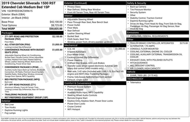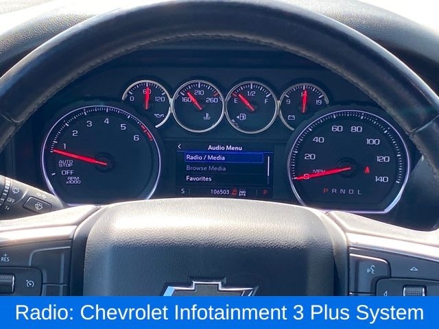 120-Volt Instrument Panel Power Outlet, 2 USB Ports, All-Star Edition, Convenience Package, Convenience Package II, Dual Exhaust w/Polished Outlets, HD Radio, HD Rear Vision Camera, Heavy-Duty Rear Locking Differential, High Capacity Air Filter, Hill Descent Control, Off-Road Suspension, Power Sliding Rear Window w/Rear Defogger, Premium Bose 7-Speaker Sound System, Radio: Chevrolet Infotainment 3 Plus System, SiriusXM Radio, Trailering Package, Universal Home Remote, Z71 Off-Road Package, 10-Way Power Driver Seat w/Lumbar, 12-Volt Rear Auxiliary Power Outlet, 120-Volt Bed Mounted Power Outlet, 170 Amp Alternator, 2 USB Ports (First Row), 220 Amps Alternator, 3.23 Rear Axle Ratio, 4-Way Manual Driver Seat Adjuster, 4-Wheel Disc Brakes, 4.2" Diagonal Color Display Driver Info Center, 40/20/40 Front Split-Bench Seat, 6 Speakers, 6-Speaker Audio System, ABS brakes, Air Conditioning, All-Weather Floor Liner (LPO) (AAK), Alloy wheels, AM/FM radio, Apple CarPlay/Android Auto, Auxiliary External Transmission Oil Cooler, Bed Protection Package, Bluetooth® For Phone, Body Color Grille, Brake assist, Bumpers: body-color, Chevrolet Connected Access, Chevrolet w/4G LTE, Chevytec Spray-On Black Bedliner, Cloth Seat Trim, Color-Keyed Carpeting Floor Covering, Compass, Convenience Package w/Buckets Seats, Deep-Tinted Glass, Delay-off headlights, Driver door bin, Driver vanity mirror, Dual front impact airbags, Dual front side impact airbags, Dual-Zone Automatic Climate Control, Electric Rear-Window Defogger, Electrical Lock Control Steering Column, Electronic Cruise Control, Electronic Stability Control, External Engine Oil Cooler, Floor Mounted Console, Front anti-roll bar, Front Bucket Seats, Front Center Armrest w/Storage, Front fog lights, Front Frame-Mounted Black Recovery Hooks, Front LED Fog Lamps, Front reading lights, Front Rubberized Vinyl Floor Mats, Front wheel independent suspension, Fully automatic headlights, Heated door mirrors, Heated Driver & Front Passenger Seats, Heated Steering Wheel, Heavy Duty Suspension, High Gloss Black Mirror Caps, Hitch Guidance, Illuminated entry, Integrated Trailer Brake Controller, Keyless Open & Start, Leather Wrapped Steering Wheel, LED Cargo Area Lighting, Low tire pressure warning, Manual Tilt Wheel Steering Column, Manual Tilt/Telescoping Steering Column, Occupant sensing airbag, OnStar & Chevrolet Connected Services Capable, Outside temperature display, Overhead airbag, Overhead console, Panic alarm, Passenger door bin, Passenger vanity mirror, Power Door Locks, Power door mirrors, Power Front Windows w/Driver Express Up/Down, Power Front Windows w/Passenger Express Down, Power Rear Windows w/Express Down, Power steering, Power windows, Preferred Equipment Group 1SP, Premium audio system: Chevrolet Infotainment System 3, Radio data system, Radio: Chevrolet Infotainment 3 System, Rear 60/40 Folding Bench Seat (Folds Up), Rear Dual USB Charging-Only Ports, Rear reading lights, Rear Rubberized-Vinyl Floor Mats, Rear step bumper, Rear Vision Camera, Rear Wheelhouse Liners, Rear window defroster, Remote keyless entry, Remote Vehicle Starter System, Security system, Single-Zone Manual/Semi-Automatic Air Conditioning, Speed control, Speed-sensing steering, Split folding rear