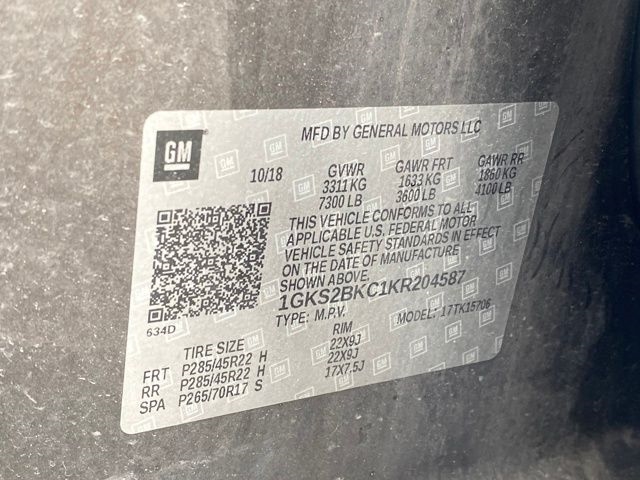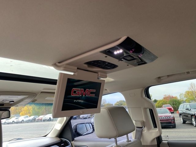Enhanced Driver Alert Package, Forward Collision Alert, IntelliBeam Automatic High Beam On/Off, Lane Keep Assist w/Lane Departure Warning, Low Speed Forward Automatic Braking, 22" 6-Spoke Split Chrome (LPO) Wheels, 3.08 Rear Axle Ratio, 3rd row seats: split-bench, 4-Wheel Antilock Disc Brakes, 4-Wheel Disc Brakes, 5 Auxiliary 12-volt Power Outlets, 9 Speakers, ABS brakes, Adjustable pedals, Air Conditioning, All-Weather Floor Mats, Alloy wheels, AM/FM radio: SiriusXM, Apple CarPlay/Android Auto, Auto High-beam Headlights, Auto-dimming door mirrors, Auto-dimming Rear-View mirror, Automatic temperature control, Black All-Weather Cargo Mat (LPO), Black Assist Steps w/Chrome Strip, Bose Premium 9-Speaker System, Brake assist, Bright Bodyside Moldings, Bumpers: body-color, CD Player, CD player, Chrome Grille Insert (LPO), Compass, Delay-off headlights, Driver door bin, Driver vanity mirror, Dual front impact airbags, Dual front side impact airbags, Electronic Stability Control, Emergency communication system: OnStar and GMC connected services capable, Exterior Parking Camera Rear, Front anti-roll bar, Front Bucket Seats, Front Center Armrest, Front dual zone A/C, Front fog lights, Front reading lights, Front wheel independent suspension, Full-Feature Reclining Bucket Seats, Fully automatic headlights, Garage door transmitter, Hands Free Power Programmable Rear Liftgate, Heated & Ventilated Driver & Front Passenger Seats, Heated door mirrors, Heated front seats, Heated Leather-Wrapped Steering Wheel, Heated rear seats, Heated steering wheel, Illuminated entry, Inside Rear-View Auto-Dimming Mirror, Interior Protection Package (LPO), Lane Change Alert w/Side Blind Zone Alert, Low tire pressure warning, Memory Package, Memory seat, Occupant sensing airbag, Open Road Package, Outside temperature display, Overhead airbag, Overhead console, Panic alarm, Passenger door bin, Passenger vanity mirror, Passive Entry System, Pedal memory, Perforated Leather-Appointed Seat Trim, Polished Exhaust Tip, Power door mirrors, Power driver seat, Power Liftgate, Power passenger seat, Power Release 2nd Row 60/40 Split-Folding Bench Seat, Power Release 2nd Row Bucket Seats, Power steering, Power Tilt & Telescopic Steering Column, Power Tilt-Sliding Sunroof w/Express-Open/Close, Power windows, Power-Adjustable Pedals For Accelerator & Brake, Preferred Equipment Group 4SA, Premium audio system: IntelliLink, Premium Edition, Premium Smooth Ride Suspension Package, Push Button Keyless Start, Radio: AM/FM/SiriusXM, Radio: AM/FM/SiriusXM w/Navigation, Rain sensing wipers, Rear air conditioning, Rear anti-roll bar, Rear Cross Traffic Alert, Rear reading lights, Rear Seat Blu-Ray/DVD Entertainment System, Rear seat center armrest, Rear window defroster, Rear window wiper, Red Illuminated Door Sill Plates w/GMC Logo (LPO), Remote Keyless Entry, Remote keyless entry, Roof rack: rails only, Security system, SiriusXM NavTraffic, SiriusXM Radio, Speed control, Speed-sensing steering, Split folding rear seat, Spoiler, Steering wheel memory, Steering wheel mounted audio controls, Tachometer, Telescoping steering wheel, Tilt steering wheel, Traction control, Trip computer, Turn signal indicator mirrors, Universal Home Remote, Variably intermittent wipers, Ventilated front seats, Voltmeter, Wheels: 18" x 8.5" Bright Machined Aluminum, Wheels: 22" x 9" Steel Interim (LPO), Enhanced Driver Alert Package, Forward Collision Alert, IntelliBeam Automatic High Beam On/Off, Lane Keep Assist w/Lane Departure Warning, Low Speed Forward Automatic Braking.
