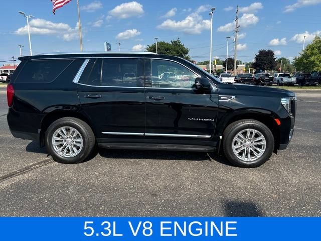 12-Way Power Seat Adjusters, 2 Presets For Outside Rearview Mirrors, 2 Presets For Power Driver Seat, 3rd Row 60/40 Power-Folding Split-Bench Seat, Apple CarPlay/Android Auto, Bose 9-Speaker Stereo Audio System Feature, Bright Chrome Bodyside Moldings, Bright Front & Rear Door Sill Plates, Chrome Door Handles w/Body-Color Strip, Dual-Pane Panoramic Power Sunroof, Front & Rear Park Assist, Hands-Free Power Programmable Rear Liftgate, HD Surround Vision, Heated & Ventilated Driver & Front Passenger Seats, Heated 2nd Row Outboard Position Seats, Heated Automatic Steering Wheel, Heated Driver & Front Passenger Seats, Hitch Guidance w/Hitch View, In-Vehicle Trailering App, Inside Rear-View Auto-Dimming Mirror, Integrated Trailer Brake Controller, Outside Heated Power-Adjustable Mirrors, Power Liftgate, Power Release 2nd Row 60/40 Split-Folding Bench Seat, Power Tilt & Telescopic Steering Column, Preferred Equipment Group 4SA, Rear Pedestrian Alert, Safety Alert Seat, SLT Luxury Package, SLT Luxury Plus Package (DISC), Speed control, Telescoping steering wheel, Tilt steering wheel, Universal Home Remote, Wheels: 20" x 9" 6-Spoke Polished Aluminum, 1st, 2nd & 3rd Row All-Weather Floor Liner (LPO), 3.23 Rear Axle Ratio, 3rd row seats: split-bench, 4-Wheel Disc Brakes, 9 Speakers, ABS brakes, Air Conditioning, Alloy wheels, AM/FM radio: SiriusXM with 360L, Auto High-beam Headlights, Auto-dimming Rear-View mirror, Automatic Emergency Braking, Automatic temperature control, Bodyside moldings, Brake assist, Bumpers: body-color, Compass, Delay-off headlights, Driver door bin, Driver vanity mirror, Dual front impact airbags, Dual front side impact airbags, Electronic Stability Control, Emergency communication system: OnStar and GMC connected services capable, Extra Capacity Cooling System, Following Distance Indicator, Forward Collision Alert, Four wheel independent suspension, Front anti-roll bar, Front Bucket Seats, Front Center Armrest, Front dual zone A/C, Front fog lights, Front Pedestrian Braking, Front reading lights, Fully automatic headlights, Garage door transmitter, HD Radio, Heated door mirrors, Heated front seats, Illuminated entry, IntelliBeam Automatic High Beam On/Off, Lane Change Alert w/Side Blind Zone Alert, Lane Keep Assist w/Lane Departure Warning, Leather steering wheel, Low tire pressure warning, Max Trailering Package, Memory seat, Occupant sensing airbag, Outside temperature display, Overhead airbag, Overhead console, Panic alarm, Passenger door bin, Passenger vanity mirror, Perforated Leather Seating Surfaces, Polished Exhaust Tip, Power door mirrors, Power driver seat, Power passenger seat, Power Release 2nd Row Bucket Seats, Power steering, Power windows, Premium Smooth Ride Suspension, Radio: AM/FM/SiriusXM, Rain sensing wipers, Rear air conditioning, Rear anti-roll bar, Rear Cross Traffic Alert, Rear reading lights, Rear seat center armrest, Rear window defroster, Rear window wiper, Remote keyless entry, Roof rack: rails only, Security system, SiriusXM w/360L, Speed-sensing steering, Split folding rear seat, Spoiler, Steering wheel mounted audio controls, Tachometer, Traction control, Trailer Side Blind Zone Alert, Trip computer, Variably intermittent wipers, Ventilated front seats, Voltmete