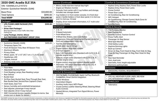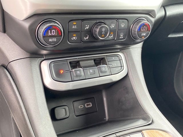 1st & 2nd Row All-Weather Floor Liner (LPO), 3.80 Final Drive Axle Ratio, 3rd Row All-Weather Floor Liner (LPO), 3rd row seats: split-bench, 4-Way Manual Driver Seat Adjuster, 4-Way Manual Passenger Seat Adjuster, 4-Wheel Disc Brakes, 6 Speakers, 6-Passenger (2-2-2 Seating Configuration), 6-Speaker Audio System Feature, 7-Passenger (2-3-2 Seating Configuration), ABS brakes, Air Conditioning, Alloy wheels, AM/FM radio: SiriusXM, Apple CarPlay/Android Auto, Automatic temperature control, Brake assist, Bumpers: body-color, Compass, Delay-off headlights, Driver door bin, Driver vanity mirror, Dual front impact airbags, Dual front side impact airbags, Electronic Stability Control, Emergency communication system: OnStar and GMC connected services capable, Floor Liner Package (LPO), Four wheel independent suspension, Front anti-roll bar, Front Bucket Seats, Front Center Armrest, Front dual zone A/C, Front reading lights, Fully automatic headlights, Heated door mirrors, Illuminated entry, Integrated Cargo Liner (LPO), Knee airbag, Low tire pressure warning, Occupant sensing airbag, Outside temperature display, Overhead airbag, Overhead console, Panic alarm, Passenger door bin, Passenger vanity mirror, Power door mirrors, Power steering, Power windows, Preferred Equipment Group 3SA, Premium audio system: GMC Infotainment System, Premium Cloth Seat Trim, Radio data system, Radio: AM/FM w/8" Diagonal Multi-Touch Display, Rear air conditioning, Rear anti-roll bar, Rear reading lights, Rear seat center armrest, Rear window defroster, Rear window wiper, Remote keyless entry, Security system, SiriusXM Radio, Speed control, Speed-sensing steering, Split folding rear seat, Spoiler, Steering wheel mounted audio controls, Tachometer, Telescoping steering wheel, Tilt steering wheel, Traction control, Trip computer, Turn signal indicator mirrors, Variably intermittent wipers, Voltmeter, Wheels: 18" Machined Aluminum w/Dark Accents.