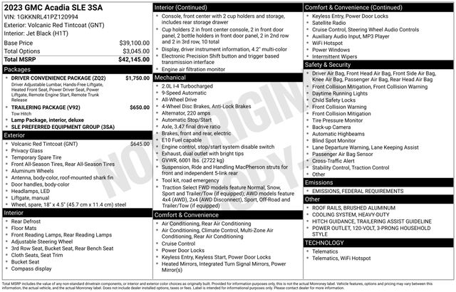 120-Volt Power Outlet, 8-Way Power Driver Seat Adjuster, Apple CarPlay/Android Auto, Brushed Aluminum Roof Rails, Driver Convenience Package, Hands Free Power Programmable Liftgate, Heated Driver & Front Passenger Seats, Heavy-Duty Cooling System, Power Driver Lumbar Control Seat Adjuster, Remote Start, Trailering Assist Guidelines, Trailering Package, 3 Years of OnStar & Connected Services Plan (DISC), 3.47 Final Drive Axle Ratio, 3rd row seats: split-bench, 4-Way Manual Driver Seat Adjuster, 4-Way Manual Passenger Seat Adjuster, 4-Wheel Disc Brakes, 6 Speakers, 6-Passenger (2-2-2 Seating Configuration), 6-Speaker Audio System Feature, 7-Passenger (2-3-2 Seating Configuration), ABS brakes, Air Conditioning, Alloy wheels, AM/FM radio: SiriusXM, Auto High-beam Headlights, Automatic temperature control, Brake assist, Bumpers: body-color, Compass, Delay-off headlights, Driver door bin, Driver vanity mirror, Dual front impact airbags, Dual front side impact airbags, Electronic Stability Control, Emergency communication system: OnStar and GMC connected services capable, Four wheel independent suspension, Front anti-roll bar, Front Bucket Seats, Front Center Armrest, Front dual zone A/C, Front reading lights, Fully automatic headlights, Heated door mirrors, Illuminated entry, Knee airbag, Low tire pressure warning, Occupant sensing airbag, Outside temperature display, Overhead airbag, Overhead console, Panic alarm, Passenger door bin, Passenger vanity mirror, Power door mirrors, Power steering, Power windows, Preferred Equipment Group 3SA, Premium Cloth Seat Trim, Radio data system, Radio: AM/FM w/8" Diagonal Multi-Touch Display, Rear air conditioning, Rear anti-roll bar, Rear reading lights, Rear window defroster, Rear window wiper, Remote keyless entry, Security system, SiriusXM Radio, Speed-sensing steering, Spoiler, Steering wheel mounted audio controls, Tachometer, Telescoping steering wheel, Tilt steering wheel, Traction control, Trip computer, Turn signal indicator mirrors, Variably intermittent wipers, Voltmeter, Wheels: 18" Machined Aluminum w/Dark Accents, Wireless Apple CarPlay/Wireless Android Auto, One Owner Clean Carfax, ALL WHEEL DRIVE, 120-Volt Power Outlet, 8-Way Power Driver Seat Adjuster, Apple CarPlay/Android Auto, Brushed Aluminum Roof Rails, Driver Convenience Package, Hands Free Power Programmable Liftgate, Heated Driver & Front Passenger Seats, Heavy-Duty Cooling System, Power Driver Lumbar Control Seat Adjuster, Remote Start, Trailering Assist Guidelines, Trailering Package.