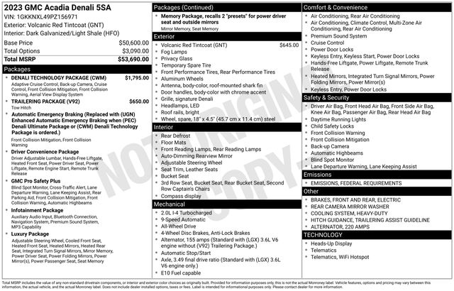 Adaptive Cruise Control, Apple CarPlay/Android Auto, Denali Technology Package, Enhanced Automatic Emergency Braking, HD Surround Vision, Heavy-Duty Cooling System, Hitch Guidance w/Hitch View, Navigation System, Power Liftgate, Preferred Equipment Group 5SA, Rear Camera Mirror, Rear Camera Mirror Washer, Trailering Assist Guidelines, Trailering Package, 20" Ultra Bright Machined Aluminum Wheels, 220 Amp Alternator, 3.47 Final Drive Axle Ratio, 3.49 Final Drive Axle Ratio, 3rd row seats: split-bench, 4-Wheel Disc Brakes, 6-Passenger (2-2-2 Seating Configuration), 8 Speakers, 8-Way Power Driver Seat Adjuster, 8-Way Power Passenger Seat Adjuster, ABS brakes, Air Conditioning, Alloy wheels, AM/FM radio: SiriusXM with 360L, Auto High-beam Headlights, Auto-dimming door mirrors, Auto-dimming Rear-View mirror, Automatic temperature control, Bose Premium 8-Speaker Audio System Feature, Brake assist, Bumpers: body-color, Compass, Delay-off headlights, Driver door bin, Driver vanity mirror, Dual front impact airbags, Dual front side impact airbags, Electronic Stability Control, Emergency communication system: OnStar and GMC connected services capable, Four wheel independent suspension, Front & Rear Electric Brakes, Front anti-roll bar, Front Bucket Seats, Front Center Armrest, Front dual zone A/C, Front fog lights, Front reading lights, Fully automatic headlights, Garage door transmitter, Heads-Up Display, Heated & Ventilated Driver & Front Passenger Seats, Heated door mirrors, Heated Driver & Front Passenger Seats, Heated front seats, Heated Rear Outboard Seating Positions, Heated rear seats, Heated steering wheel, Illuminated entry, Knee airbag, Low tire pressure warning, Memory seat, Occupant sensing airbag, Outside temperature display, Overhead airbag, Overhead console, Panic alarm, Passenger door bin, Passenger vanity mirror, Perforated Leather-Appointed Seat Trim, Power door mirrors, Power Driver Lumbar Control Seat Adjuster, Power driver seat, Power Passenger Lumbar Control Seat Adjuster, Power passenger seat, Power steering, Power windows, Radio data system, Radio: AM/FM 8" Diagonal Multi-Touch Navigation, Rear air conditioning, Rear anti-roll bar, Rear reading lights, Rear window defroster, Rear window wiper, Remote keyless entry, Roof rack: rails only, Security system, SiriusXM w/360L, Speed control, Speed-sensing steering, Spoiler, Steering wheel memory, Steering wheel mounted audio controls, Tachometer, Telescoping steering wheel, Tilt steering wheel, Traction control, Trip computer, Turn signal indicator mirrors, Variably intermittent wipers, Ventilated front seats, Voltmeter, Wireless Apple CarPlay/Wireless Android Auto, One Owner Clean Carfax, Adaptive Cruise Control, Apple CarPlay/Android Auto, Denali Technology Package, Enhanced Automatic Emergency Braking, HD Surround Vision, Heavy-Duty Cooling System, Hitch Guidance w/Hitch View, Navigation System, Power Liftgate, Preferred Equipment Group 5SA, Rear Camera Mirror, Rear Camera Mirror Washer, Trailering Assist Guidelines, Trailering Package.