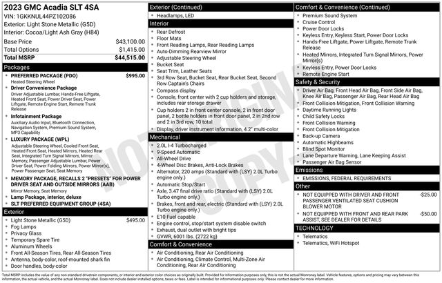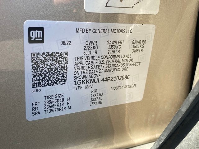 8-Way Power Passenger Seat Adjuster, Heated & Ventilated Driver & Front Passenger Seats, Heated Rear Outboard Seating Positions, Luxury Package, Memory Package, Navigation System, Power Passenger Lumbar Control Seat Adjuster, Power Tilt & Telescopic Steering Column, Power-Adjustable Body-Color Outside Heated Mirrors, 18" Aluminum Wheels, 3 Years of OnStar & Connected Services Plan (DISC), 3.47 Final Drive Axle Ratio, 3rd row seats: split-bench, 4-Way Manual Passenger Seat Adjuster, 4-Wheel Disc Brakes, 6-Passenger (2-2-2 Seating Configuration), 8 Speakers, 8-Way Power Driver Seat Adjuster, ABS brakes, Air Conditioning, Alloy wheels, AM/FM radio: SiriusXM with 360L, Apple CarPlay/Android Auto, Auto High-beam Headlights, Auto-dimming Rear-View mirror, Automatic temperature control, Bose Premium 8-Speaker Audio System Feature, Brake assist, Bumpers: body-color, Compass, Delay-off headlights, Driver door bin, Driver vanity mirror, Dual front impact airbags, Dual front side impact airbags, Electronic Stability Control, Emergency communication system: OnStar and GMC connected services capable, Four wheel independent suspension, Front anti-roll bar, Front Bucket Seats, Front Center Armrest, Front dual zone A/C, Front fog lights, Front reading lights, Fully automatic headlights, Garage door transmitter, Heated door mirrors, Heated Driver & Front Passenger Seats, Heated front seats, Heated Steering Wheel, Illuminated entry, Knee airbag, Low tire pressure warning, Not Equip w/Heat & Vent Seat Cushion Blower Motor, Not Equipped w/Front & Rear Park Assist, Occupant sensing airbag, Outside temperature display, Overhead airbag, Overhead console, Panic alarm, Passenger door bin, Passenger vanity mirror, Perforated Leather-Appointed Seat Trim, Power door mirrors, Power Driver Lumbar Control Seat Adjuster, Power driver seat, Power Liftgate, Power steering, Power windows, Preferred Equipment Group 4SA, Preferred Package, Radio data system, Radio: AM/FM 8" Diagonal Multi-Touch Navigation, Rear air conditioning, Rear anti-roll bar, Rear reading lights, Rear window defroster, Rear window wiper, Remote keyless entry, Roof rack: rails only, Security system, SiriusXM w/360L, Speed control, Speed-sensing steering, Spoiler, Steering wheel mounted audio controls, Tachometer, Telescoping steering wheel, Tilt steering wheel, Traction control, Trip computer, Turn signal indicator mirrors, Variably intermittent wipers, Voltmeter, Wireless Apple CarPlay/Wireless Android Auto, 8-Way Power Passenger Seat Adjuster, Heated & Ventilated Driver & Front Passenger Seats, Heated Rear Outboard Seating Positions, Luxury Package, Memory Package, Navigation System, Power Passenger Lumbar Control Seat Adjuster, Power Tilt & Telescopic Steering Column, Power-Adjustable Body-Color Outside Heated Mirrors.