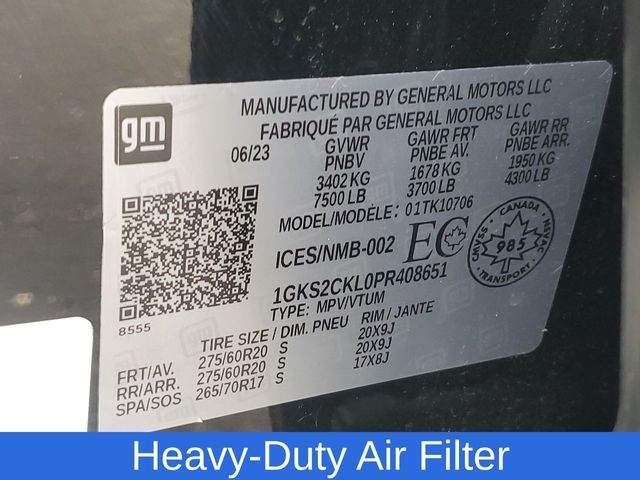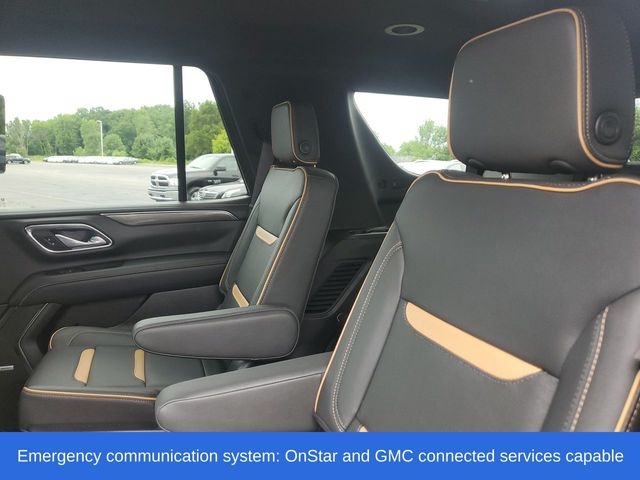 2 Presets For Outside Rearview Mirrors, 3 Years of GMC Connected Services, 3 Years of OnStar Safety & Security, 3rd Row 60/40 Power-Folding Split-Bench Seat, 9 Speakers, ABS brakes, Adaptive suspension, Alloy wheels, AM/FM Stereo, Apple CarPlay/Android Auto, Auto-dimming Rear-View mirror, Auto-leveling suspension, Automatic Emergency Braking, Automatic temperature control, Black Roof-Mounted Luggage Rack Side Rails, Bose 9-Speaker Stereo Audio System Feature, Bright Front & Rear Door Sill Plates, Compass, Electronic Stability Control, Emergency communication system: OnStar and GMC connected services capable, Following Distance Indicator, Forward Collision Alert, Four wheel independent suspension, Front & Rear Park Assist, Front dual zone A/C, Front fog lights, Front High-Approach Angle Fascia, Front Pedestrian Braking, Fully automatic headlights, Garage door transmitter, Hands-Free Power Programmable Rear Liftgate, Heated & Ventilated Driver & Front Passenger Seats, Heated 2nd Row Outboard Position Seats, Heated door mirrors, Heated Driver & Front Passenger Seats, Heated Steering Wheel, Heavy-Duty Air Filter, Hill Descent Control, Inside Rear-View Auto-Dimming Mirror, IntelliBeam Automatic High Beam On/Off, Magnetic Ride Control Suspension, Memory seat, Navigation System, Outside Heated Power-Adjustable Mirrors, Passenger vanity mirror, Perforated Leather Seating Surfaces, Power Liftgate, Power Release 2nd Row 60/40 Split-Folding Bench Seat, Power Tilt & Telescopic Steering Column, Preferred Equipment Group 4SB, Rain sensing wipers, Rear Cross Traffic Alert, Rear Seat Media System, Red Horizontal-Mounted Recovery Hooks, Remote keyless entry, Roof rack: rails only, Safety Alert Seat, Security system, SiriusXM w/360L, Spoiler, Steering wheel memory, Steering wheel mounted audio controls, Telescoping steering wheel, Traction control, Trip computer, Turn signal indicator mirrors, Universal Home Remote, Ventilated front seats, Voltmeter, Wireless Charging, 3.23 Rear Axle Ratio, Air Conditioning, Auto High-beam Headlights, Auto-dimming door mirrors, Brake assist, Bumpers: body-color, Delay-off headlights, Dual front impact airbags, Dual front side impact airbags, Front anti-roll bar, Front Bucket Seats, Lane Change Alert w/Side Blind Zone Alert, Lane Keep Assist w/Lane Departure Warning, Low tire pressure warning, Occupant sensing airbag, Overhead airbag, Panic alarm, Power door mirrors, Power driver seat, Rear air conditioning, Rear anti-roll bar, Rear window defroster, Rear window wiper, Speed control, Speed-sensing steering, Split folding rear seat, Variably intermittent wipers, Wheels: 20" x 9" 6-Spoke Machined Aluminum, 6.2L V8 ENGINE, 2 Presets For Outside Rearview Mirrors, 3 Years of GMC Connected Services, 3 Years of OnStar Safety & Security, 3rd Row 60/40 Power-Folding Split-Bench Seat, 9 Speakers, ABS brakes, Adaptive suspension, Alloy wheels, AM/FM Stereo, Apple CarPlay/Android Auto, Auto-dimming Rear-View mirror, Auto-leveling suspension, Automatic Emergency Braking, Automatic temperature control, Black Roof-Mounted Luggage Rack Side Rails, Bose 9-Speaker Stereo Audio System Feature, Bright Front & Rear Door Sill Plates, Compass, Electronic Stability Control, E