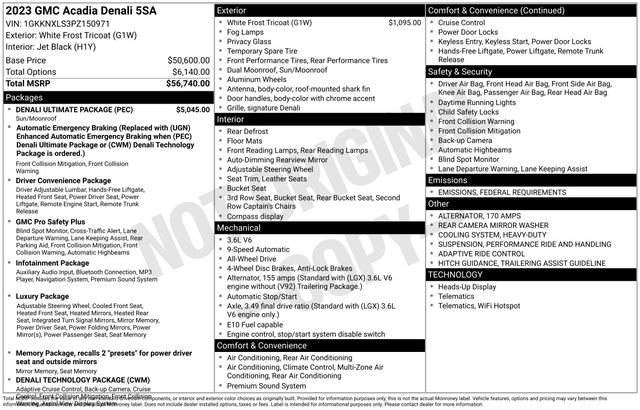 Adaptive Cruise Control, Adaptive Ride Control, Bose Premium 8-Speaker Audio System Feature, Denali Technology Package, Denali Ultimate Package, Dual SkyScape 2-Panel Power Sunroof, Enhanced Automatic Emergency Braking, HD Surround Vision, Navigation System, Rear Camera Mirror, Rear Camera Mirror Washer, Trailering Package, 170 Amp Alternator, 20" Ultra Bright Machined Aluminum Wheels, 3.49 Final Drive Axle Ratio, 3rd row seats: split-bench, 4-Wheel Disc Brakes, 6-Passenger (2-2-2 Seating Configuration), 8 Speakers, 8-Way Power Driver Seat Adjuster, 8-Way Power Passenger Seat Adjuster, ABS brakes, Air Conditioning, Alloy wheels, AM/FM radio: SiriusXM with 360L, Apple CarPlay/Android Auto, Auto High-beam Headlights, Auto-dimming door mirrors, Auto-dimming Rear-View mirror, Automatic temperature control, Brake assist, Bumpers: body-color, Compass, Delay-off headlights, Driver door bin, Driver vanity mirror, Dual front impact airbags, Dual front side impact airbags, Electronic Stability Control, Emergency communication system: OnStar and GMC connected services capable, Four wheel independent suspension, Front anti-roll bar, Front Bucket Seats, Front Center Armrest, Front dual zone A/C, Front fog lights, Front reading lights, Fully automatic headlights, Garage door transmitter, Heads-Up Display, Heated & Ventilated Driver & Front Passenger Seats, Heated door mirrors, Heated Driver & Front Passenger Seats, Heated front seats, Heated Rear Outboard Seating Positions, Heated rear seats, Heated steering wheel, Heavy-Duty Cooling System, Hitch Guidance w/Hitch View, Illuminated entry, Knee airbag, Low tire pressure warning, Memory seat, Occupant sensing airbag, Outside temperature display, Overhead airbag, Overhead console, Panic alarm, Passenger door bin, Passenger vanity mirror, Perforated Leather-Appointed Seat Trim, Performance Ride & Handling Suspension, Power door mirrors, Power Driver Lumbar Control Seat Adjuster, Power driver seat, Power Liftgate, Power Passenger Lumbar Control Seat Adjuster, Power passenger seat, Power steering, Power windows, Preferred Equipment Group 5SA, Radio data system, Radio: AM/FM 8" Diagonal Multi-Touch Navigation, Rear air conditioning, Rear anti-roll bar, Rear reading lights, Rear window defroster, Rear window wiper, Remote keyless entry, Roof rack: rails only, Security system, SiriusXM w/360L, Speed control, Speed-sensing steering, Spoiler, Steering wheel memory, Steering wheel mounted audio controls, Tachometer, Telescoping steering wheel, Tilt steering wheel, Traction control, Trailering Assist Guidelines, Trip computer, Turn signal indicator mirrors, Variably intermittent wipers, Ventilated front seats, Voltmeter, Wireless Apple CarPlay/Wireless Android Auto, Adaptive Cruise Control, Adaptive Ride Control, Bose Premium 8-Speaker Audio System Feature, Denali Technology Package, Denali Ultimate Package, Dual SkyScape 2-Panel Power Sunroof, Enhanced Automatic Emergency Braking, HD Surround Vision, Navigation System, Rear Camera Mirror, Rear Camera Mirror Washer, Trailering Package.