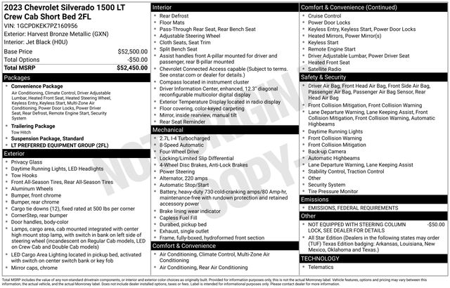 10-Way Power Driver Seat w/Lumbar, 12.3" Multicolor Reconfigurable Digital Display, 120-Volt Instrument Panel Power Outlet, All-Star Edition, Auto-Locking Rear Differential, Bluetooth® For Phone, Chrome Mirror Caps, Color-Keyed Carpeting Floor Covering, Compass, Convenience Package, Deep-Tinted Glass, Dual Rear USB Ports (Charge Only), Dual-Zone Automatic Climate Control, Electrical Steering Column Lock, Electronic Cruise Control, Front Frame-Mounted Black Recovery Hooks, HD Rear Vision Camera, Heated Driver & Front Outboard Passenger Seats, Heated Steering Wheel, Keyless Open & Start, LED Cargo Area Lighting, OnStar & Chevrolet Connected Services Capable, Power Front Windows w/Driver Express Up/Down, Power Front Windows w/Passenger Express Down, Power Rear Windows w/Express Down, Preferred Equipment Group 2FL, Rear 60/40 Folding Bench Seat (Folds Up), SiriusXM w/360L, Steering Wheel Audio Controls, Trailering Package, Wheels: 18" x 8.5" Bright Silver Painted Aluminum, Wireless Phone Projection, Wrapped Steering Wheel, 120-Volt Bed Mounted Power Outlet, 3.42 Rear Axle Ratio, 4-Wheel Disc Brakes, 40/20/40 Front Split-Bench Seat, 6 Speakers, 6-Speaker Audio System, ABS brakes, Air Conditioning, Alloy wheels, AM/FM radio: SiriusXM with 360L, Apple CarPlay/Android Auto, Auto High-beam Headlights, Automatic Emergency Braking, Automatic temperature control, Brake assist, Bumpers: chrome, Chevrolet Connected Access Capable, Cloth Seat Trim, Delay-off headlights, Driver door bin, Driver vanity mirror, Dual front impact airbags, Dual front side impact airbags, Electric Rear-Window Defogger, Electronic Stability Control, EZ Lift Power Lock & Release Tailgate, Following Distance Indicator, Forward Collision Alert, Front anti-roll bar, Front Center Armrest w/Storage, Front dual zone A/C, Front Pedestrian Braking, Front reading lights, Front Rubberized Vinyl Floor Mats, Front wheel independent suspension, Fully automatic headlights, Heated door mirrors, Heated front seats, Heated Power-Adjustable Outside Mirrors, Heated steering wheel, Hitch Guidance, Illuminated entry, Inside Rear-View Mirror w/Tilt, IntelliBeam Automatic High Beam On/Off, Lane Keep Assist w/Lane Departure Warning, Low tire pressure warning, Not Equipped w/Steering Column Lock, Occupant sensing airbag, Outside temperature display, Overhead airbag, Overhead console, Panic alarm, Passenger door bin, Passenger vanity mirror, Power door mirrors, Power driver seat, Power steering, Power windows, Preferred Equipment Group 1LT, Premium audio system: Chevrolet Infotainment 3 Premium, Radio data system, Radio: Chevrolet Infotainment 3 Premium System, Rear reading lights, Rear Rubberized-Vinyl Floor Mats, Rear step bumper, Rear window defroster, Remote keyless entry, Remote Vehicle Starter System, Security system, Speed control, Speed-sensing steering, Split folding rear seat, Standard Suspension Package, Standard Tailgate, Steering wheel mounted audio controls, Tachometer, Telescoping steering wheel, Theft Deterrent System (Unauthorized Entry), Tilt steering wheel, Traction control, Trip computer, Variably intermittent wipers, Voltmeter, Wi-Fi Hot Spot Capable, One Owner Clean Carfax, 10-Way Power Driver Seat w/Lumbar,