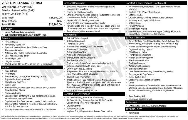 Apple CarPlay/Android Auto, Speed control, 3.47 Final Drive Axle Ratio, 3rd row seats: split-bench, 4-Way Manual Driver Seat Adjuster, 4-Way Manual Passenger Seat Adjuster, 4-Wheel Disc Brakes, 6 Speakers, 6-Passenger (2-2-2 Seating Configuration), 6-Speaker Audio System Feature, ABS brakes, Air Conditioning, Alloy wheels, AM/FM radio: SiriusXM, Auto High-beam Headlights, Automatic temperature control, Brake assist, Bumpers: body-color, Compass, Delay-off headlights, Driver door bin, Driver vanity mirror, Dual front impact airbags, Dual front side impact airbags, Electronic Stability Control, Emergency communication system: OnStar and GMC connected services capable, Four wheel independent suspension, Front anti-roll bar, Front Bucket Seats, Front Center Armrest, Front dual zone A/C, Front reading lights, Fully automatic headlights, Heated door mirrors, Illuminated entry, Knee airbag, Low tire pressure warning, Occupant sensing airbag, Outside temperature display, Overhead airbag, Overhead console, Panic alarm, Passenger door bin, Passenger vanity mirror, Power door mirrors, Power steering, Power windows, Preferred Equipment Group 3SA, Premium Cloth Seat Trim, Radio data system, Radio: AM/FM w/8" Diagonal Multi-Touch Display, Rear air conditioning, Rear anti-roll bar, Rear reading lights, Rear window defroster, Rear window wiper, Remote keyless entry, Security system, SiriusXM Radio, Speed-sensing steering, Spoiler, Steering wheel mounted audio controls, Tachometer, Telescoping steering wheel, Tilt steering wheel, Traction control, Trip computer, Turn signal indicator mirrors, Variably intermittent wipers, Voltmeter, Wheels: 18" Machined Aluminum w/Dark Accents, Wireless Apple CarPlay/Wireless Android Auto, Clean Carfax, ACADIA PRO SAFETY PLUS PKG, Apple CarPlay/Android Auto, Speed control.