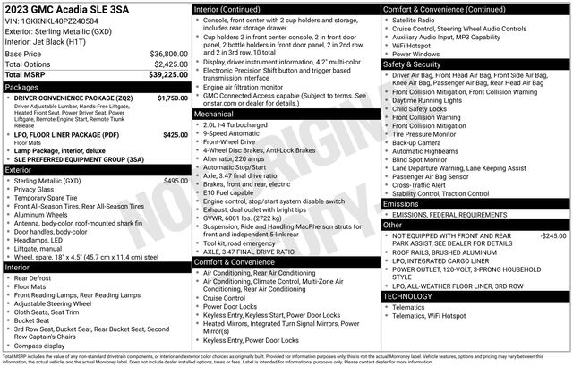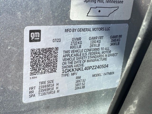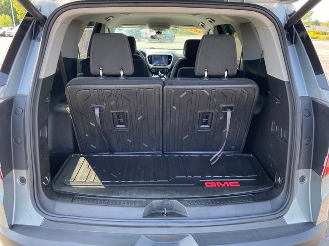 120-Volt Power Outlet, 8-Way Power Driver Seat Adjuster, Brushed Aluminum Roof Rails, Driver Convenience Package, Hands Free Power Programmable Liftgate, Heated Driver & Front Passenger Seats, Power Driver Lumbar Control Seat Adjuster, Remote Start, 1st & 2nd Row All-Weather Floor Liner (LPO), 3.47 Final Drive Axle Ratio, 3rd Row All-Weather Floor Liner (LPO), 3rd row seats: split-bench, 4-Way Manual Driver Seat Adjuster, 4-Way Manual Passenger Seat Adjuster, 4-Wheel Disc Brakes, 6 Speakers, 6-Passenger (2-2-2 Seating Configuration), 6-Speaker Audio System Feature, ABS brakes, Air Conditioning, Alloy wheels, AM/FM radio: SiriusXM, Apple CarPlay/Android Auto, Auto High-beam Headlights, Automatic temperature control, Brake assist, Bumpers: body-color, Compass, Delay-off headlights, Driver door bin, Driver vanity mirror, Dual front impact airbags, Dual front side impact airbags, Electronic Stability Control, Emergency communication system: OnStar and GMC connected services capable, Floor Liner Package (LPO), Four wheel independent suspension, Front anti-roll bar, Front Bucket Seats, Front Center Armrest, Front dual zone A/C, Front reading lights, Fully automatic headlights, Heated door mirrors, Illuminated entry, Integrated Cargo Liner (LPO), Knee airbag, Low tire pressure warning, Not Equipped w/Front & Rear Park Assist (060), Occupant sensing airbag, Outside temperature display, Overhead airbag, Overhead console, Panic alarm, Passenger door bin, Passenger vanity mirror, Power door mirrors, Power steering, Power windows, Preferred Equipment Group 3SA, Premium Cloth Seat Trim, Radio data system, Radio: AM/FM w/8" Diagonal Multi-Touch Display, Rear air conditioning, Rear anti-roll bar, Rear reading lights, Rear window defroster, Rear window wiper, Remote keyless entry, Security system, SiriusXM Radio, Speed control, Speed-sensing steering, Spoiler, Steering wheel mounted audio controls, Tachometer, Telescoping steering wheel, Tilt steering wheel, Traction control, Trip computer, Turn signal indicator mirrors, Variably intermittent wipers, Voltmeter, Wheels: 18" Machined Aluminum w/Dark Accents, Wireless Apple CarPlay/Wireless Android Auto, 120-Volt Power Outlet, 8-Way Power Driver Seat Adjuster, Brushed Aluminum Roof Rails, Driver Convenience Package, Hands Free Power Programmable Liftgate, Heated Driver & Front Passenger Seats, Power Driver Lumbar Control Seat Adjuster, Remote Start.