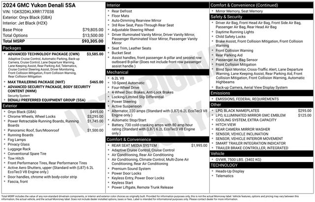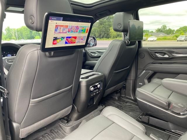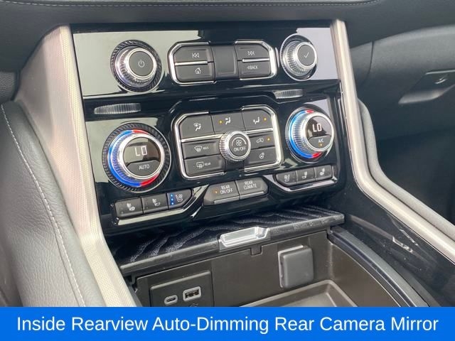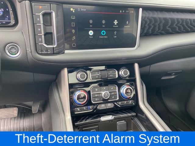 Advanced Security Package, Advanced Technology Package, Bose 14-Speaker Surround w/CenterPoint, Enhanced Automatic Parking Assist, Glass Breakage Sensor, Inside Rearview Auto-Dimming Rear Camera Mirror, Navigation System, Rear Camera Mirror Washer, Reverse Automatic Braking, Super Cruise, Theft-Deterrent Alarm System, Vehicle Inclination Sensor, Vehicle Interior Movement Sensor, 12-Way Power Seat Adjusters, 14 Speakers, 15" Diagonal Multi-Color Head-Up Display, 2 Presets For Outside Rearview Mirrors, 3.23 Rear Axle Ratio, 3rd Row 60/40 Power-Folding Split-Bench Seat, 3rd row seats: split-bench, 4-Wheel Disc Brakes, ABS brakes, Adaptive Cruise Control, Adaptive suspension, Air Conditioning, Alloy wheels, AM/FM radio: SiriusXM with 360L, AM/FM Stereo, Apple CarPlay/Android Auto, Auto High-beam Headlights, Auto-dimming door mirrors, Auto-dimming Rear-View mirror, Auto-leveling suspension, Automatic Emergency Braking, Automatic temperature control, Black Nameplates (LPO), Bodyside moldings, Brake assist, Bright Front & Rear Door Sill Plates, Bumpers: body-color, Chrome Door Handles w/Body-Color Strip, Compass, Delay-off headlights, Driver door bin, Driver vanity mirror, Dual Exhaust System, Dual front impact airbags, Dual front side impact airbags, Dual-Pane Panoramic Power Sunroof, Electronic Stability Control, Emergency communication system: OnStar and GMC connected services capable, Enhanced Automatic Emergency Braking, Extra Capacity Cooling System, Floor Console, Following Distance Indicator, Forward Collision Alert, Four wheel independent suspension, Front & Rear Park Assist, Front anti-roll bar, Front Bucket Seats, Front Center Armrest, Front dual zone A/C, Front fog lights, Front Pedestrian Braking, Front reading lights, Fully automatic headlights, Galvano Bodyside Moldings, Garage door transmitter, Hands-Free Power Programmable Rear Liftgate, HD Surround Vision, Heads-Up Display, Heated 2nd Row Outboard Position Seats, Heated door mirrors, Heated Driver & Front Passenger Seats, Heated front seats, Heated rear seats, Heated Steering Wheel, Heated steering wheel, Hill Descent Control, Hitch View, Illuminated entry, Illuminated Mirror GMC Emblem (LPO), Inside Rear-View Auto-Dimming Mirror, Integrated Trailer Brake Controller, IntelliBeam Automatic High Beam On/Off, Lane Change Alert w/Side Blind Zone Alert, Lane Keep Assist w/Lane Departure Warning, Low tire pressure warning, Magnetic Ride Control Suspension, Max Trailering Package, Memory seat, Occupant sensing airbag, Outside Heated Power-Adjustable Mirrors, Outside temperature display, Overhead airbag, Overhead console, Panic alarm, Passenger door bin, Passenger vanity mirror, Perforated Heated & Ventilated Dr & Frt Pass Seats, Perforated Leather Seating Surfaces, Power door mirrors, Power driver seat, Power Liftgate, Power passenger seat, Power Release 2nd Row Bucket Seats, Power steering, Power Tilt & Telescopic Steering Column, Power windows, Power-Retractable Assist Steps, Preferred Equipment Group 5SA, Rain sensing wipers, Rear air conditioning, Rear anti-roll bar, Rear Cross Traffic Alert, Rear Pedestrian Alert, Rear reading lights, Rear Seat Media System, Rear window defroster, Rear window wiper, Remote k