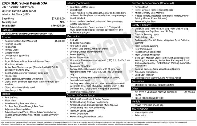 Apple CarPlay/Android Auto, Bose 14-Speaker Surround w/CenterPoint, Dual-Pane Panoramic Power Sunroof, HD Surround Vision, Heated 2nd Row Outboard Position Seats, Navigation System, Perforated Heated & Ventilated Dr & Frt Pass Seats, Power Liftgate, Power Release 2nd Row Bucket Seats, Power Tilt & Telescopic Steering Column, Speed control, Wheels: 20" x 9" 6-Spoke Polished Aluminum, 12-Way Power Seat Adjusters, 14 Speakers, 15" Diagonal Multi-Color Head-Up Display, 2 Presets For Outside Rearview Mirrors, 3.23 Rear Axle Ratio, 3rd Row 60/40 Power-Folding Split-Bench Seat, 3rd row seats: split-bench, 4-Wheel Disc Brakes, ABS brakes, Adaptive Cruise Control, Adaptive suspension, Air Conditioning, Alloy wheels, AM/FM radio: SiriusXM with 360L, AM/FM Stereo, Auto High-beam Headlights, Auto-dimming door mirrors, Auto-dimming Rear-View mirror, Auto-leveling suspension, Automatic Emergency Braking, Automatic temperature control, Bodyside moldings, Brake assist, Bright Front & Rear Door Sill Plates, Bumpers: body-color, Chrome Door Handles w/Body-Color Strip, Compass, Delay-off headlights, Deleted 3 Years of OnStar Premium Plan, Driver door bin, Driver vanity mirror, Dual Exhaust System, Dual front impact airbags, Dual front side impact airbags, Electronic Stability Control, Emergency communication system: OnStar and GMC connected services capable, Enhanced Automatic Emergency Braking, Floor Console, Following Distance Indicator, Forward Collision Alert, Four wheel independent suspension, Front & Rear Park Assist, Front anti-roll bar, Front Bucket Seats, Front Center Armrest, Front dual zone A/C, Front fog lights, Front Pedestrian Braking, Front reading lights, Fully automatic headlights, Galvano Bodyside Moldings, Garage door transmitter, Hands-Free Power Programmable Rear Liftgate, Heads-Up Display, Heated door mirrors, Heated Driver & Front Passenger Seats, Heated front seats, Heated rear seats, Heated Steering Wheel, Heated steering wheel, Hill Descent Control, Illuminated entry, Inside Rear-View Auto-Dimming Mirror, IntelliBeam Automatic High Beam On/Off, Lane Change Alert w/Side Blind Zone Alert, Lane Keep Assist w/Lane Departure Warning, Low tire pressure warning, Magnetic Ride Control Suspension, Memory seat, Occupant sensing airbag, Outside Heated Power-Adjustable Mirrors, Outside temperature display, Overhead airbag, Overhead console, Panic alarm, Passenger door bin, Passenger vanity mirror, Perforated Leather Seating Surfaces, Power door mirrors, Power driver seat, Power passenger seat, Power steering, Power windows, Preferred Equipment Group 5SA, Rain sensing wipers, Rear air conditioning, Rear anti-roll bar, Rear Cross Traffic Alert, Rear Pedestrian Alert, Rear reading lights, Rear window defroster, Rear window wiper, Remote keyless entry, Roof rack: rails only, Safety Alert Seat, Security system, SiriusXM w/360L, Speed-sensing steering, Split folding rear seat, Spoiler, Steering wheel memory, Steering wheel mounted audio controls, Tachometer, Telescoping steering wheel, Tilt steering wheel, Traction control, Trip computer, Turn signal indicator mirrors, Universal Home Remote, Variably intermittent wipers, Ventilated front seats, Voltmeter, Wireless Charging, One Owner Clean Carfax, 6.2L V8 ENGINE, GMC