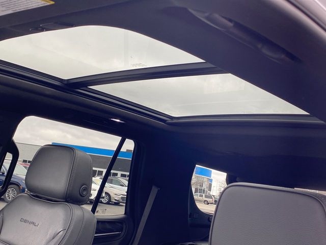 Beyond its impressive performance, this Yukon Denali is packed with innovative technology and premium amenities. The Bose 14-speaker surround sound system and dual-pane panoramic sunroof create an immersive driving experience, while features like the heated and ventilated front seats, heated second-row seats, and power-folding third-row bench ensure unparalleled comfort for all passengers.