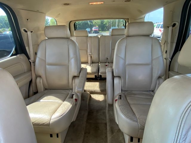 10 Speakers, 18" x 8" 7-Spoke Aluminum Wheels, 22" x 9" 7-Spoke Chromed Aluminum Wheels, 2nd Row Bench Power Seat Release Only, 3.42 Rear Axle Ratio, 3rd row seats: split-bench, 4-Wheel Disc Brakes, ABS brakes, Adaptive suspension, Adjustable pedals, Air Conditioning, Alloy wheels, AM/FM radio: XM, AM/FM Stereo w/CD/DVD/MP3/XM Satellite, AM/FM Stereo w/Navigation/XM Satellite, Auto-dimming door mirrors, Auto-dimming Rear-View mirror, Auto-leveling suspension, Automatic temperature control, Bodyside moldings, Bumpers: body-color, CD player, Compass, Delay-off headlights, Driver door bin, Driver vanity mirror, Dual front impact airbags, DVD-Audio, Electronic Stability Control, Emergency communication system: OnStar Directions & Connections, Front anti-roll bar, Front Bucket Seats, Front Center Armrest w/Storage, Front dual zone A/C, Front fog lights, Front reading lights, Front wheel independent suspension, Fully automatic headlights, Garage door transmitter, Heated & Cooled Driver & Front Passenger Seats, Heated door mirrors, Heated Front Bucket Seats, Heated front seats, Heated rear seats, Heated Steering Wheel, High intensity discharge headlights: Xenon, Illuminated entry, IntelliBeam Headlamps, Leather steering wheel, Low tire pressure warning, Memory seat, Nuance Leather Seating Surfaces, Occupant sensing airbag, Outside temperature display, Overhead airbag, Overhead console, Panic alarm, Passenger door bin, Passenger vanity mirror, Pedal memory, Power door mirrors, Power driver seat, Power Liftgate, Power passenger seat, Power steering, Power Tilt-Sliding Sunroof, Power windows, Radio data system, Rain sensing wipers, Rear air conditioning, Rear anti-roll bar, Rear audio controls, Rear reading lights, Rear Seat Entertainment System, Rear window defroster, Rear window wiper, Rear-View Camera System, Remote CD player, Remote keyless entry, Roof rack, Security system, Speed control, Split folding rear seat, Spoiler, Steering wheel mounted audio controls, Tachometer, Tilt steering wheel, Traction control, Trip computer, Turn signal indicator mirrors, V8 Ultra Luxury Collection, Variably intermittent wipers, XM Satellite Radio.