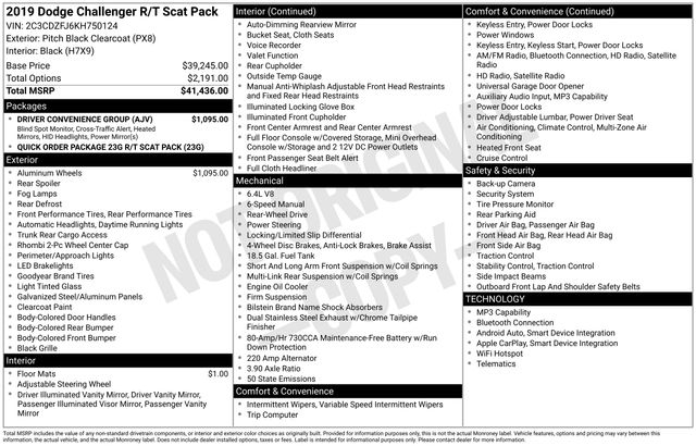 1320 Plus Group, Apple CarPlay/Android Auto, Black-Edged Premium Floormats, Blind Spot & Cross Path Detection, Bright Pedals, Center Rear 3-Point Seat Belt, Child Seat Upper Tether Anchorages, Door Trim Panel w/Ambient Lighting, Driver Convenience Group, Front Passenger Seat, Front Passenger Seat Belt Alert, Heated Steering Wheel, High-Intensity Discharge Headlamps, Nappa/Alcantara Performance Seats, ParkView Rear Back-Up Camera, Power Multi-Function Foldaway Mirrors, Power Tilt/Telescope Steering Column, Quick Order Package 23G R/T Scat Pack, Radio: Uconnect 4C w/8.4" Display, Rear 60/40 Folding Seat, Speed control, Wheels: 20" x 9.0" Black Noise, 1-Yr SiriusXM Guardian Trial, 230MM Rear Axle, 4-Wheel Disc Brakes, 4G LTE Wi-Fi Hot Spot, 6 Speakers, 8.4" Touchscreen Display, ABS brakes, Air Conditioning, Alloy wheels, AM/FM radio: SiriusXM, Anti-whiplash front head restraints, Apple CarPlay, Auto-dimming Rear-View mirror, Automatic temperature control, Brake assist, Bumpers: body-color, Cargo Net, Compass, Delay-off headlights, Driver door bin, Driver vanity mirror, Dual front impact airbags, Dual front side impact airbags, Electronic Stability Control, Emergency communication system: SiriusXM Guardian, Four wheel independent suspension, Front anti-roll bar, Front Bucket Seats, Front Center Armrest, Front dual zone A/C, Front Floor Mat, Front fog lights, Front reading lights, Fully automatic headlights, Garage door transmitter, Google Android Auto, GPS Antenna Input, HD Radio, Heated door mirrors, Heated front seats, Heated steering wheel, Houndstooth Cloth Performance Seats, Illuminated entry, Integrated Center Stack Radio, Integrated Voice Command w/Bluetooth, Leather Shift Knob, Low tire pressure warning, Media Hub (2 USB, AUX), Outside temperature display, Overhead airbag, Overhead console, Panic alarm, Passenger door bin, Passenger vanity mirror, Power door mirrors, Power driver seat, Power steering, Power windows, Radio data system, Rear anti-roll bar, Rear reading lights, Rear Seat Belt Delete, Rear seat center armrest, Rear window defroster, Remote keyless entry, Rhombi 2-Pc Wheel Center Cap, Scat Pack Logo Houndstooth Seat, Security system, SiriusXM Satellite Radio, Speed-sensing steering, Split folding rear seat, Spoiler, Sport steering wheel, Steering wheel mounted audio controls, Tachometer, Telescoping steering wheel, Tilt steering wheel, Traction control, Trip computer, USB Host Flip, Variably intermittent wipers, Wheels: 20" x 9.0" Forged/Painted Aluminum, Clean Carfax, REAR SEAT DELETE, FACTORY RACECAR, 1320 Plus Group, Apple CarPlay/Android Auto, Black-Edged Premium Floormats, Blind Spot & Cross Path Detection, Bright Pedals, Center Rear 3-Point Seat Belt, Child Seat Upper Tether Anchorages, Door Trim Panel w/Ambient Lighting, Driver Convenience Group, Front Passenger Seat, Front Passenger Seat Belt Alert, Heated Steering Wheel, High-Intensity Discharge Headlamps, Nappa/Alcantara Performance Seats, ParkView Rear Back-Up Camera, Power Multi-Function Foldaway Mirrors, Power Tilt/Telescope Steering Column, Quick Order Package 23G R/T Scat Pack, Radio: Uconnect 4C w/8.4" Display, Rear 60/40 Folding Seat, Speed control, Wheels: 20" x 9.0" Black Noise.