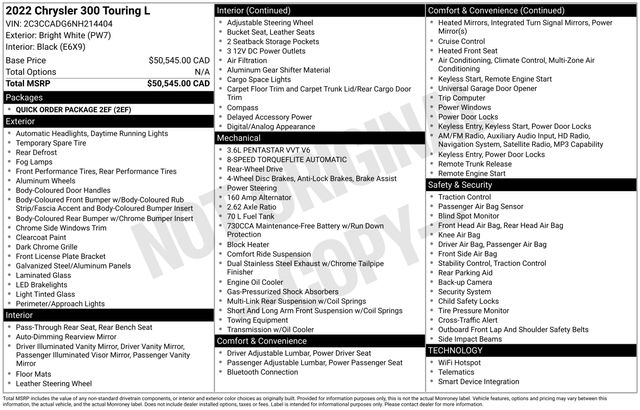 1-Yr SiriusXM Guardian Trial, 2-Piece Shark Fin Antenna, 4-Wheel Disc Brakes, 4G LTE Wi-Fi Hot Spot, 6 Speakers, 8.4" Touchscreen Display, ABS brakes, Air Conditioning, Alloy wheels, AM/FM radio: SiriusXM, Anti-whiplash front head restraints, Apple CarPlay, Apple CarPlay/Android Auto, Auto-dimming door mirrors, Auto-Dimming Exterior Driver Mirror, Auto-dimming Rear-View mirror, Automatic temperature control, Blind Spot & Cross Path Detection, Body Color Exterior Mirrors, Brake assist, Bumpers: body-color, Compass, Delay-off headlights, Driver door bin, Driver vanity mirror, Dual front impact airbags, Dual front side impact airbags, Electronic Stability Control, Emergency communication system: SiriusXM Guardian, Exterior Mirrors Courtesy Lamps, Exterior Mirrors w/Heating Element, Exterior Mirrors w/Supplemental Signals, For Details, Visit DriveUconnect.com, For More Info, Call 800-643-2112, Four wheel independent suspension, Front anti-roll bar, Front Bucket Seats, Front Center Armrest, Front dual zone A/C, Front fog lights, Front reading lights, Fully automatic headlights, Garage door transmitter, Google Android Auto, GPS Antenna Input, HD Radio, Heated door mirrors, Heated Front Seats, Heated front seats, Illuminated entry, Integrated Voice Command w/Bluetooth, Knee airbag, Leather Trimmed Bucket Seats, Low tire pressure warning, Media Hub (2 USB, AUX), Occupant sensing airbag, Outside temperature display, Overhead airbag, Overhead console, Panic alarm, ParkView Rear Back-Up Camera, Passenger door bin, Passenger vanity mirror, Power 2-Way Driver Lumbar Adjust, Power 2-Way Passenger Lumbar Adjust, Power door mirrors, Power driver seat, Power Front Driver/Passenger Seats, Power passenger seat, Power steering, Power windows, Quick Order Package 2EF, Radio data system, Radio: Uconnect 4C w/8.4" Display, Rear anti-roll bar, Rear reading lights, Rear seat center armrest, Rear window defroster, Remote keyless entry, Security system, SiriusXM Radio Service, SiriusXM Satellite Radio, Speed control, Speed-sensing steering, Split folding rear seat, Steering wheel mounted audio controls, Tachometer, Telescoping steering wheel, Tilt steering wheel, Traction control, Trip computer, Turn signal indicator mirrors, USB Host Flip, Variably intermittent wipers, Wheels: 20" x 8.0" Black Noise Aluminum.