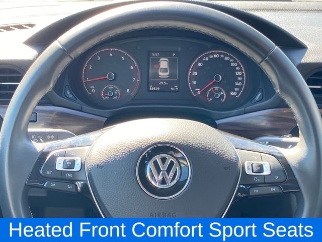But this Passat isn't just a pleasure to drive; it's also a testament to Volkswagen's commitment to safety. Equipped with a suite of advanced driver-assistance features, including Blind Spot Monitoring, Rear Cross-Traffic Alert, and Forward Collision Warning, this sedan helps keep you and your loved ones secure on the road.