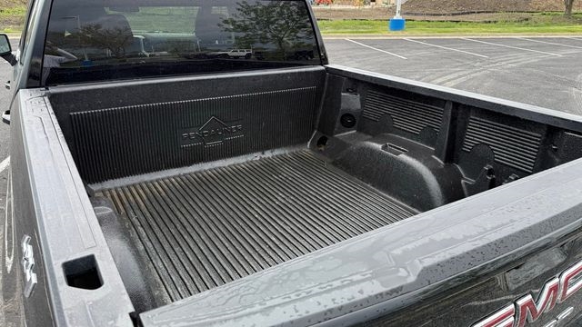 10-Way Power Driver Seat Adjuster w/Lumbar, 12-Volt Rear Auxiliary Power Outlet, 220 Amp Alternator, 3.42 Rear Axle Ratio, 4-Way Manual Passenger Seat Adjuster, 4-Wheel Disc Brakes, 4G LTE Wi-Fi Hotspot Capable, 6 Speakers, 6-Speaker Audio System Feature, ABS brakes, Air Conditioning, Alloy wheels, AM/FM radio: SiriusXM, Apple CarPlay/Android Auto, Auto-Locking Rear Differential, Automatic temperature control, Brake assist, Bumpers: chrome, Chrome Grille, Cloth Seat Trim, Color-Keyed Carpeting Floor Covering, Compass, Deep-Tinted Glass, Delay-off headlights, Driver door bin, Driver vanity mirror, Dual front impact airbags, Dual front side impact airbags, Dual-Zone Automatic Climate Control, Electric Rear-Window Defogger, Electrical Lock Control Steering Column, Electronic Stability Control, Front 40/20/40 Split-Bench Seat, Front anti-roll bar, Front Center Armrest w/Storage, Front dual zone A/C, Front Frame-Mounted Black Recovery Hooks, Front reading lights, Front Rubberized-Vinyl Floor Mats, Front wheel independent suspension, Fully automatic headlights, GMC Connected Access Capable, Heated door mirrors, Heated Driver & Front Outboard Passenger Seating, Heated front seats, Heated Steering Wheel, Heated steering wheel, Heavy Duty Suspension, Hitch Guidance, Illuminated entry, Keyless Open & Start, LED Cargo Area Lighting, Low tire pressure warning, Manual Tilt-Wheel & Telescoping Steering Column, Occupant sensing airbag, OnStar & GMC Connected Services Capable, Outside temperature display, Overhead airbag, Overhead console, Panic alarm, Passenger door bin, Passenger vanity mirror, Power Door Locks, Power door mirrors, Power driver seat, Power Front Windows w/Driver Express Up/Down, Power Front Windows w/Passenger Express Down, Power Rear Windows w/Express Down, Power steering, Power windows, Premium audio system: GMC Infotainment System, Radio data system, Radio: GMC Infotainment Audio System, Rear Dual USB Charging-Only Ports, Rear reading lights, Rear Rubberized-Vinyl Floor Mats, Rear step bumper, Rear Wheelhouse Liners, Rear window defroster, Remote keyless entry, Remote Vehicle Starter System, Security system, SiriusXM Radio, SLE Convenience Package, SLE Value Package, Speed control, Speed-sensing steering, Split folding rear seat, Steering Wheel Audio Controls, Steering wheel mounted audio controls, Tachometer, Telescoping steering wheel, Theft Deterrent System (Unauthorized Entry), Tilt steering wheel, Traction control, Trailering Package, Trip computer, Variably intermittent wipers, Voltmeter, Wheels: 17" x 8" Bright Silver Painted Aluminum.