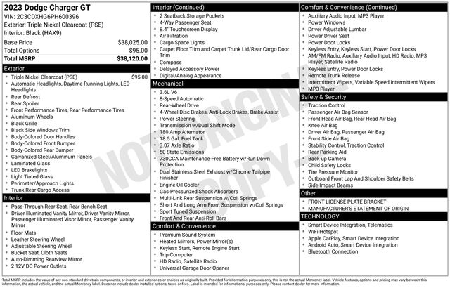1-Yr SiriusXM Guardian Trial, 2-Piece Shark Fin Antenna, 4-Wheel Disc Brakes, 4G LTE Wi-Fi Hot Spot, 6 Speakers, 8.4" Touchscreen Display, ABS brakes, Air Conditioning, Alloy wheels, AM/FM radio: SiriusXM, Anti-whiplash front head restraints, Apple CarPlay, Apple CarPlay/Android Auto, Auto-dimming Rear-View mirror, Automatic temperature control, Brake assist, Bumpers: body-color, Cloth Performance Seats, Compass, Delay-off headlights, Driver door bin, Driver vanity mirror, Dual front impact airbags, Dual front side impact airbags, Electronic Stability Control, Emergency communication system: SiriusXM Guardian, For Details, Visit DriveUconnect.com, Four wheel independent suspension, Front anti-roll bar, Front Bucket Seats, Front Center Armrest, Front dual zone A/C, Front License Plate Bracket, Front reading lights, Fully automatic headlights, Garage door transmitter: HomeLink, Google Android Auto, GPS Antenna Input, HD Radio, Heated door mirrors, Illuminated entry, Integrated Center Stack Radio, Integrated Voice Command w/Bluetooth, Knee airbag, Leather Shift Knob, Low tire pressure warning, Manufacturer's Statement of Origin, Media Hub (2 USB, AUX), Occupant sensing airbag, Outside temperature display, Overhead airbag, Overhead console, Panic alarm, ParkView Rear Back-Up Camera, Passenger door bin, Passenger vanity mirror, Power 2-Way Driver Lumbar Adjust, Power 8-Way Driver Seat, Power door mirrors, Power driver seat, Power steering, Power windows, Radio: Uconnect 4C w/8.4" Display, Rear anti-roll bar, Rear Armrest w/Cupholder Seat, Rear reading lights, Rear seat center armrest, Rear window defroster, Remote keyless entry, Speed control, Speed-Sensitive Wipers, Split folding rear seat, Spoiler, Steering wheel mounted audio controls, Tachometer, Telescoping steering wheel, Tilt steering wheel, Traction control, Trip computer, USB Host Flip, Variably intermittent wipers, Wheels: 20" x 8" Satin Carbon Painted.