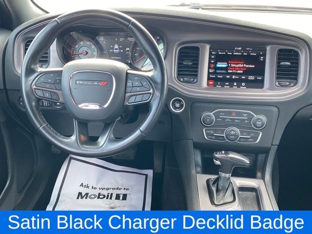 Black 1-Piece Performance Spoiler, Black Badge, Black Dodge Grille Badge, Blacktop Package, Gloss Black I/P Cluster Trim Rings, Rhombi 2-Pc Wheel Center Cap, Satin Black Charger Decklid Badge, Satin Black Dodge Tail Lamp Badge, Wheels: 20" x 8" Black Noise Painted, 1-Yr SiriusXM Guardian Trial, 2-Piece Shark Fin Antenna, 4-Wheel Disc Brakes, 4G LTE Wi-Fi Hot Spot, 6 Speakers, 8.4" Touchscreen Display, ABS brakes, Air Conditioning, Alloy wheels, AM/FM radio: SiriusXM, Anti-whiplash front head restraints, Apple CarPlay, Apple CarPlay/Android Auto, Auto-dimming Rear-View mirror, Automatic temperature control, Brake assist, Bumpers: body-color, Cloth Performance Seats, Compass, Delay-off headlights, Driver door bin, Driver vanity mirror, Dual front impact airbags, Dual front side impact airbags, Electronic Stability Control, Emergency communication system: SiriusXM Guardian, For Details, Visit DriveUconnect.com, Four wheel independent suspension, Front anti-roll bar, Front Bucket Seats, Front Center Armrest, Front dual zone A/C, Front License Plate Bracket, Front reading lights, Fully automatic headlights, Garage door transmitter: HomeLink, Google Android Auto, GPS Antenna Input, HD Radio, Heated door mirrors, Illuminated entry, Integrated Center Stack Radio, Integrated Voice Command w/Bluetooth, Knee airbag, Leather Shift Knob, Low tire pressure warning, Manufacturer's Statement of Origin, Media Hub (2 USB, AUX), Occupant sensing airbag, Outside temperature display, Overhead airbag, Overhead console, Panic alarm, ParkView Rear Back-Up Camera, Passenger door bin, Passenger vanity mirror, Power 2-Way Driver Lumbar Adjust, Power 8-Way Driver Seat, Power door mirrors, Power driver seat, Power steering, Power windows, Quick Order Package 2EH, Radio: Uconnect 4C w/8.4" Display, Rear anti-roll bar, Rear Armrest w/Cupholder Seat, Rear reading lights, Rear seat center armrest, Rear window defroster, Remote keyless entry, Speed control, Speed-Sensitive Wipers, Split folding rear seat, Spoiler, Steering wheel mounted audio controls, Tachometer, Telescoping steering wheel, Tilt steering wheel, Traction control, Trip computer, USB Host Flip, Variably intermittent wipers, Wheels: 20" x 8" Satin Carbon Painted, Black 1-Piece Performance Spoiler, Black Badge, Black Dodge Grille Badge, Blacktop Package, Gloss Black I/P Cluster Trim Rings, Rhombi 2-Pc Wheel Center Cap, Satin Black Charger Decklid Badge, Satin Black Dodge Tail Lamp Badge, Wheels: 20" x 8" Black Noise Painted.