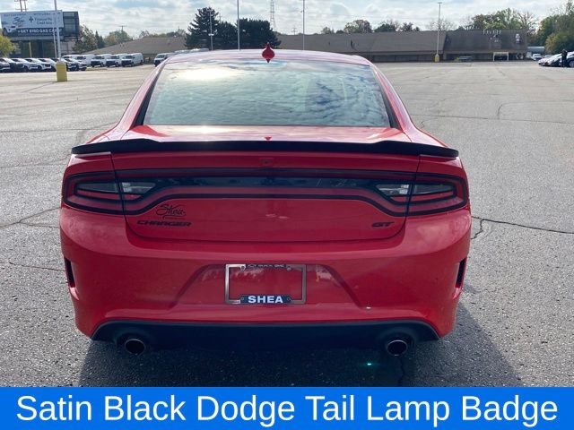 Black 1-Piece Performance Spoiler, Black Badge, Black Dodge Grille Badge, Blacktop Package, Gloss Black I/P Cluster Trim Rings, Rhombi 2-Pc Wheel Center Cap, Satin Black Charger Decklid Badge, Satin Black Dodge Tail Lamp Badge, Wheels: 20" x 8" Black Noise Painted, 1-Yr SiriusXM Guardian Trial, 2-Piece Shark Fin Antenna, 4-Wheel Disc Brakes, 4G LTE Wi-Fi Hot Spot, 6 Speakers, 8.4" Touchscreen Display, ABS brakes, Air Conditioning, Alloy wheels, AM/FM radio: SiriusXM, Anti-whiplash front head restraints, Apple CarPlay, Apple CarPlay/Android Auto, Auto-dimming Rear-View mirror, Automatic temperature control, Brake assist, Bumpers: body-color, Cloth Performance Seats, Compass, Delay-off headlights, Driver door bin, Driver vanity mirror, Dual front impact airbags, Dual front side impact airbags, Electronic Stability Control, Emergency communication system: SiriusXM Guardian, For Details, Visit DriveUconnect.com, Four wheel independent suspension, Front anti-roll bar, Front Bucket Seats, Front Center Armrest, Front dual zone A/C, Front License Plate Bracket, Front reading lights, Fully automatic headlights, Garage door transmitter: HomeLink, Google Android Auto, GPS Antenna Input, HD Radio, Heated door mirrors, Illuminated entry, Integrated Center Stack Radio, Integrated Voice Command w/Bluetooth, Knee airbag, Leather Shift Knob, Low tire pressure warning, Manufacturer's Statement of Origin, Media Hub (2 USB, AUX), Occupant sensing airbag, Outside temperature display, Overhead airbag, Overhead console, Panic alarm, ParkView Rear Back-Up Camera, Passenger door bin, Passenger vanity mirror, Power 2-Way Driver Lumbar Adjust, Power 8-Way Driver Seat, Power door mirrors, Power driver seat, Power steering, Power windows, Quick Order Package 2EH, Radio: Uconnect 4C w/8.4" Display, Rear anti-roll bar, Rear Armrest w/Cupholder Seat, Rear reading lights, Rear seat center armrest, Rear window defroster, Remote keyless entry, Speed control, Speed-Sensitive Wipers, Split folding rear seat, Spoiler, Steering wheel mounted audio controls, Tachometer, Telescoping steering wheel, Tilt steering wheel, Traction control, Trip computer, USB Host Flip, Variably intermittent wipers, Wheels: 20" x 8" Satin Carbon Painted, Black 1-Piece Performance Spoiler, Black Badge, Black Dodge Grille Badge, Blacktop Package, Gloss Black I/P Cluster Trim Rings, Rhombi 2-Pc Wheel Center Cap, Satin Black Charger Decklid Badge, Satin Black Dodge Tail Lamp Badge, Wheels: 20" x 8" Black Noise Painted.