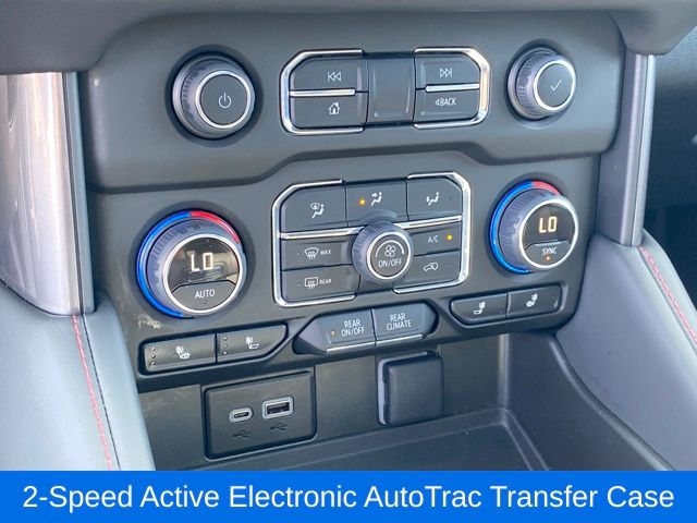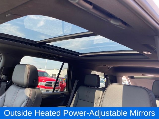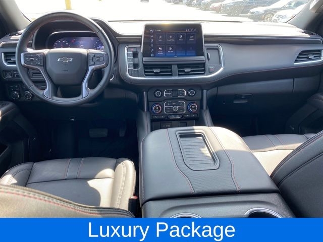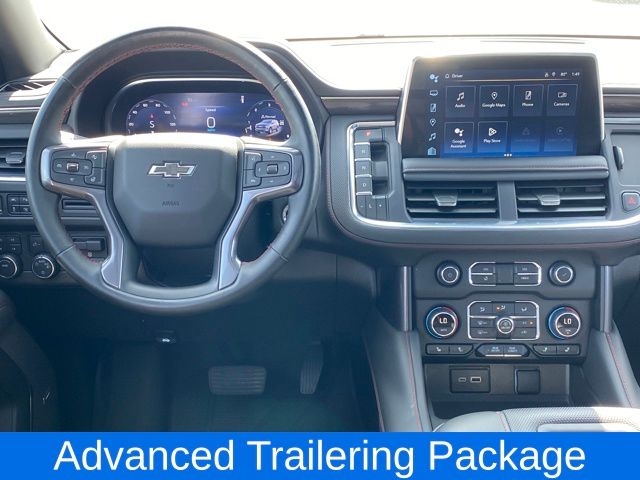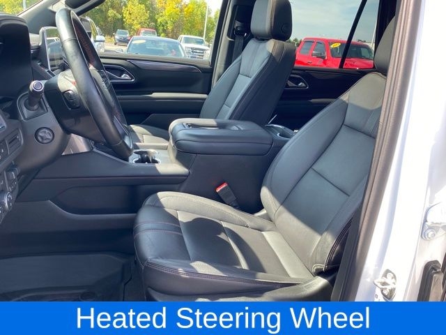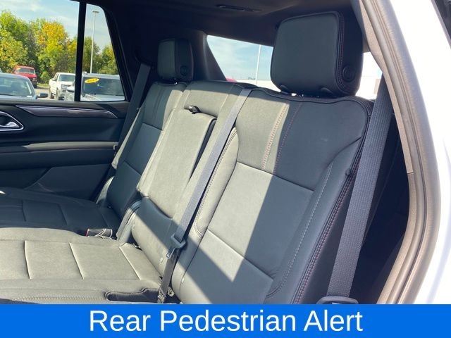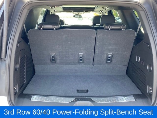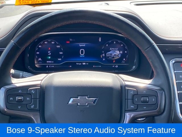 2-Speed Active Electronic AutoTrac Transfer Case, 2nd Row Pwr Release 60/40 Split-Folding Bench Seat, 3rd Row 60/40 Power-Folding Split-Bench Seat, Adaptive Cruise Control, Advanced Trailering Package, Bose 9-Speaker Stereo Audio System Feature, Driver Alert Package, Enhanced Automatic Emergency Braking, Extra Capacity Cooling System, HD Surround Vision, Heated 2nd Row Outboard Seats, Heated Steering Wheel, Hitch Guidance w/Hitch View, Integrated Trailer Brake Controller, Lane Change Alert w/Side Blind Zone Alert, Luxury Package, Max Trailering Package, Memory Settings, Navigation System, Outside Heated Power-Adjustable Mirrors, Power Tilt & Telescopic Steering Column, Rear Cross Traffic Alert, Rear Pedestrian Alert, Smart Trailer Integration Indicator, 10-Way Power Driver & Passenger Seat Adjusters, 1st & 2nd Row Color-Keyed Carpeted Floor Mats, 1st, 2nd & 3rd Rows All-Weather Floor Liners (LPO), 3.23 Rear Axle Ratio, 3rd row seats: split-bench, 4-Wheel Disc Brakes, 9 Speakers, ABS brakes, Air Conditioning, Alloy wheels, AM/FM radio: SiriusXM with 360L, Apple CarPlay/Android Auto, Auto High-beam Headlights, Auto-Dimming Inside Rear-View Mirror, Auto-dimming Rear-View mirror, Automatic temperature control, Brake assist, Bright Front & Rear Door Sill Plates, Bumpers: body-color, Color-Keyed Carpeting Floor Covering, Compass, Delay-off headlights, Driver & Front Outboard Passenger Airbags, Driver door bin, Driver vanity mirror, Dual front impact airbags, Dual front side impact airbags, Dual-Pane Power Panoramic Sunroof, Electronic Stability Control, Emergency communication system: OnStar and Chevrolet connected services capable, Enhanced Driver Information Center, Floor Console w/Storage Area, Four wheel independent suspension, Front anti-roll bar, Front Bucket Seats, Front Center Armrest, Front dual zone A/C, Front High-Back Reclining Bucket Seats, Front reading lights, Fully automatic headlights, Garage door transmitter, Hands-Free Rear Power Programmable Liftgate, Heated door mirrors, Heated Driver & Front Passenger Seats, Heated front seats, Illuminated entry, Infotainment Display, LED Daytime Running Lamps, Low tire pressure warning, Memory seat, Memory Settings for Driver, Not Equipped w/Wheel Locks (LPO), Occupant sensing airbag, Outside temperature display, Overhead airbag, Overhead console, Panic alarm, Passenger door bin, Passenger vanity mirror, Perforated Leather Seat Trim, Power door mirrors, Power driver seat, Power Liftgate, Power passenger seat, Power steering, Power windows, Preferred Equipment Group 1SP, Premium audio system: Chevrolet Infotainment 3 Premium, Premium Smooth Ride Suspension, Radio: Chevrolet Infotainment 3 Premium System, Rain sensing wipers, Rear air conditioning, Rear anti-roll bar, Rear reading lights, Rear seat center armrest, Rear window defroster, Rear window wiper, Remote keyless entry, Remote Start, Roof rack: rails only, Security system, Set of 4 Wheel Locks (LPO), SiriusXM Radio w/360L, Speed control, Speed-sensing steering, Split folding rear seat, Spoiler, Steering wheel mounted audio controls, Tachometer, Telescoping steering wheel, Tilt steering wheel, Traction control, Trip computer, Universal Home Remote, Variably intermittent wipers, Voltmeter, Wheels: 22" x