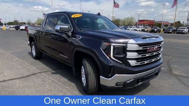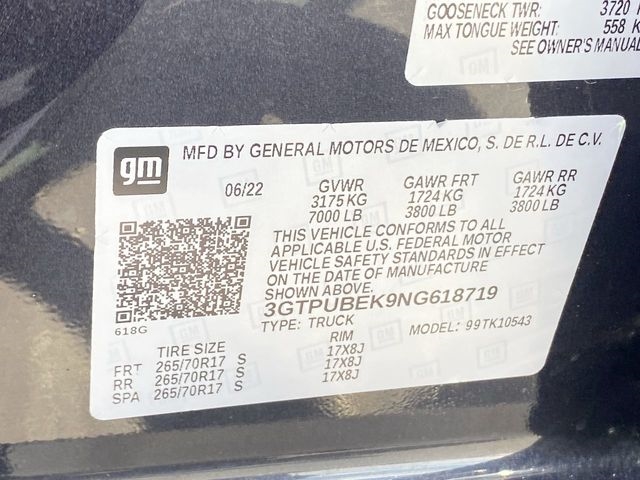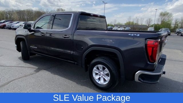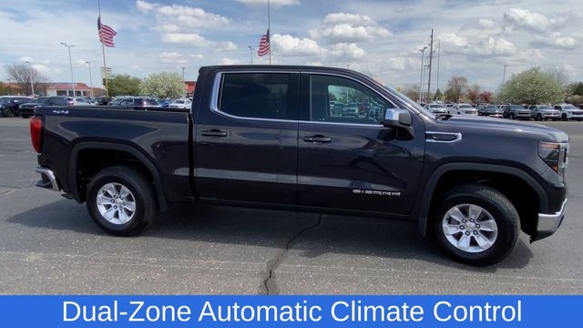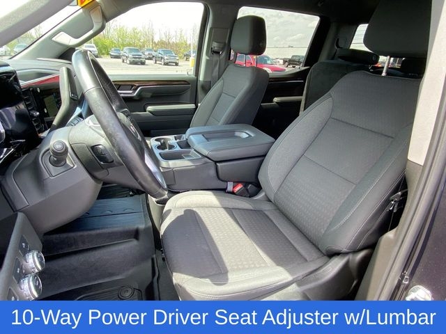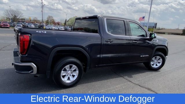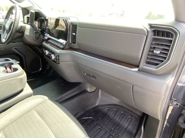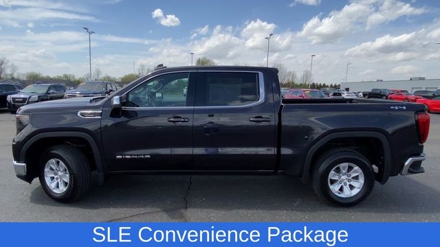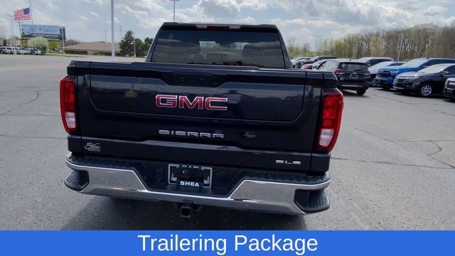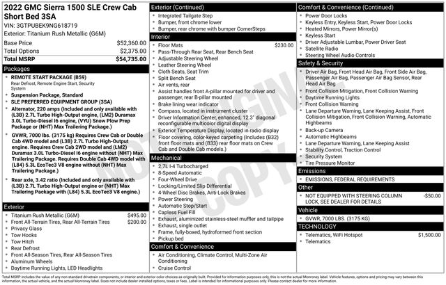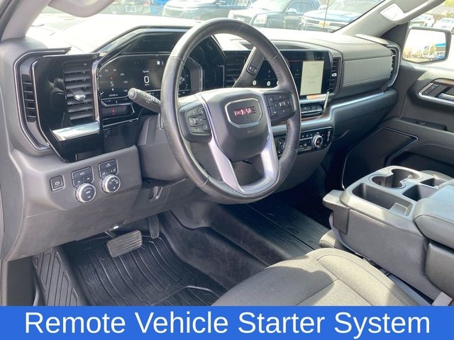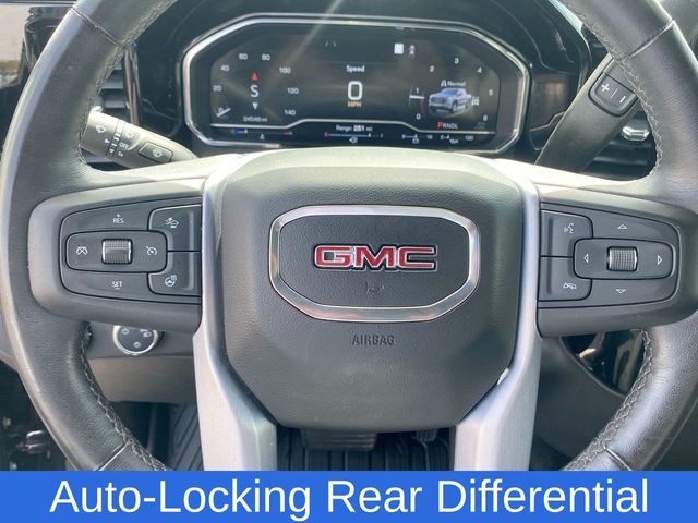 10-Way Power Driver Seat Adjuster w/Lumbar, Apple CarPlay/Android Auto, Auto-Locking Rear Differential, Dual-Zone Automatic Climate Control, Electric Rear-Window Defogger, Exterior Parking Camera Rear, Heated Driver & Front Outboard Passenger Seating, Heated Steering Wheel, LED Cargo Area Lighting, Manual Tilt-Wheel & Telescoping Steering Column, Navigation System, Remote Start Package, Remote Vehicle Starter System, SLE Convenience Package, SLE Value Package, Speed control, Theft Deterrent System (Unauthorized Entry), Trailering Package, 120-Volt Bed Mounted Power Outlet, 120-Volt Instrument Panel Power Outlet, 2 Charge/Data USB Ports, 2 Type-C Charge-Only Rear USB Ports, 220 Amp Alternator, 3 Years of OnStar & Connected Services Plan, 3.42 Rear Axle Ratio, 3.42 Rear Axle Ratio w/Max Trailering Pkg, 4-Way Manual Passenger Seat Adjuster, 4-Wheel Disc Brakes, 6 Speakers, 6-Speaker Audio System Feature, ABS brakes, Air Conditioning, All-Weather Floor Liner (LPO), Alloy wheels, AM/FM radio: SiriusXM with 360L, Auto High-beam Headlights, Automatic Emergency Braking, Automatic temperature control, Brake assist, Buckle to Drive, Bumpers: chrome, Chrome Header w/Medium Silver Grille Insert Bars, Cloth Seat Trim, Color-Keyed Carpeting Floor Covering, Compass, Deep-Tinted Glass, Delay-off headlights, Driver door bin, Driver vanity mirror, Dual front impact airbags, Dual front side impact airbags, Electrical Steering Column Lock, Electronic Stability Control, Emergency communication system: OnStar and GMC Connected Services capable, Following Distance Indicator, Forward Collision Alert, Front 40/20/40 Split-Bench Seat, Front anti-roll bar, Front Center Armrest w/Storage, Front dual zone A/C, Front Frame-Mounted Black Recovery Hooks, Front Pedestrian Braking, Front reading lights, Front Rubberized-Vinyl Floor Mats, Front wheel independent suspension, Fully automatic headlights, GMC Connected Access Capable, HD Rear Vision Camera, Heated door mirrors, Heated front seats, Heated steering wheel, Hitch Guidance, Illuminated entry, IntelliBeam Automatic High Beam On/Off, Keyless Open & Start, Lane Keep Assist w/Lane Departure Warning, Low tire pressure warning, Not Equipped w/Steering Column Lock, Occupant sensing airbag, OnStar & GMC Connected Services Capable, Outside temperature display, Overhead airbag, Overhead console, Panic alarm, Passenger door bin, Passenger vanity mirror, Power Door Locks, Power door mirrors, Power driver seat, Power Front Windows w/Driver Express Up/Down, Power Front Windows w/Passenger Express Down, Power Rear Windows w/Express Down, Power steering, Power windows, Preferred Equipment Group 3SA, Premium audio system: GMC Infotainment System, Push Button Start, Radio data system, Radio: Premium GMC Infotainment Audio System, Rear reading lights, Rear Rubberized-Vinyl Floor Mats, Rear step bumper, Rear window defroster, Remote keyless entry, Security system, SiriusXM w/360L, Speed-sensing steering, Split folding rear seat, Standard Suspension Package, Steering Wheel Audio Controls, Steering wheel mounted audio controls, Tachometer, Telescoping steering wheel, Tilt steering wheel, Traction control, Trip computer, Variably intermittent wipers, Voltmeter, Whee