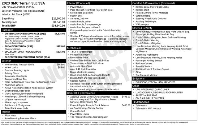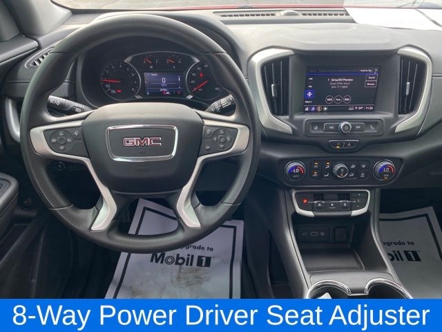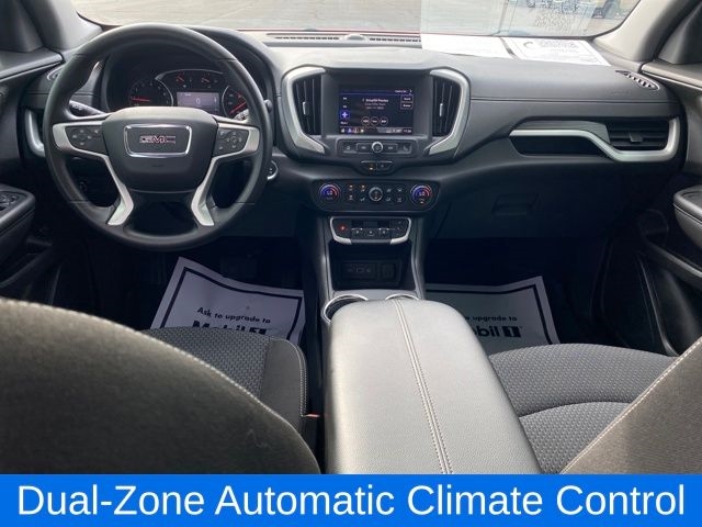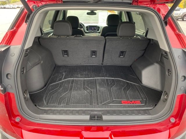 8-Way Power Driver Seat Adjuster, Adaptive Cruise Control, Black GMC Center Caps w/Red GMC Lettering, Black Mirror Caps, Darkened Front Grille, Driver & Front Passenger Heated Seats, Driver Convenience Package, Dual-Zone Automatic Climate Control, Elevation Edition, Outside Heated Power-Adjustable Mirrors, Rear Park Assist, Remote Start, Roof-Mounted Luggage Rack Side Rails, Safety Alert Seat, Terrain Pro Safety Plus, Wheels: 19" Gloss Black Aluminum, 2 USB Data Ports w/Auxiliary Input Jack, 3.47 Axle Ratio, 4-Way Manual Driver's Seat, 4-Way Manual Front Passenger Seat, 4-Wheel Disc Brakes, 4.2" Multi-Color Driver Information Screen, 6 Speakers, 6-Speaker Audio System Feature, ABS brakes, Air Conditioning, Alloy wheels, AM/FM radio: SiriusXM, Auto High-beam Headlights, Auto-dimming Rear-View mirror, Automatic temperature control, Bluetooth® For Phone, Brake assist, Bumpers: body-color, Cold Air Grille Shutter, Compass, Delay-off headlights, Driver door bin, Driver vanity mirror, Dual front impact airbags, Dual front side impact airbags, Electronic Stability Control, Emergency communication system: OnStar and GMC connected services capable, Floor Liner Package (LPO), Four wheel independent suspension, Front & Rear All-Weather Floor Liners (LPO), Front anti-roll bar, Front Bucket Seats, Front Center Armrest, Front reading lights, Fully automatic headlights, Heated door mirrors, Illuminated entry, Integrated Cargo Liner (LPO), Low tire pressure warning, Occupant sensing airbag, Outside temperature display, Overhead airbag, Overhead console, Panic alarm, Passenger door bin, Passenger vanity mirror, Power door mirrors, Power Driver Lumbar Control, Power Programmable Rear Liftgate, Power steering, Power windows, Preferred Equipment Group 3SA, Premium Cloth Seat Trim, Radio data system, Radio: GMC Infotainment Audio System w/7" Display, Rear anti-roll bar, Rear seat center armrest, Rear window defroster, Rear window wiper, Remote keyless entry, Security system, SiriusXM Radio, Speed control, Speed-sensing steering, Split folding rear seat, Spoiler, Steering wheel mounted audio controls, Tachometer, Telescoping steering wheel, Tilt steering wheel, Traction control, Trip computer, Variably intermittent wipers, Wheel Locks, Wheels: 17" x 7" Silver Painted Aluminum, Wireless Apple CarPlay/Wireless Android Auto, 8-Way Power Driver Seat Adjuster, Adaptive Cruise Control, Black GMC Center Caps w/Red GMC Lettering, Black Mirror Caps, Darkened Front Grille, Driver & Front Passenger Heated Seats, Driver Convenience Package, Dual-Zone Automatic Climate Control, Elevation Edition, Outside Heated Power-Adjustable Mirrors, Rear Park Assist, Remote Start, Roof-Mounted Luggage Rack Side Rails, Safety Alert Seat, Terrain Pro Safety Plus, Wheels: 19" Gloss Black Aluminum.