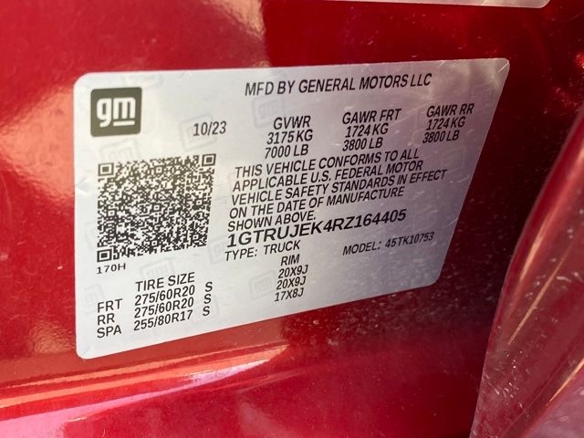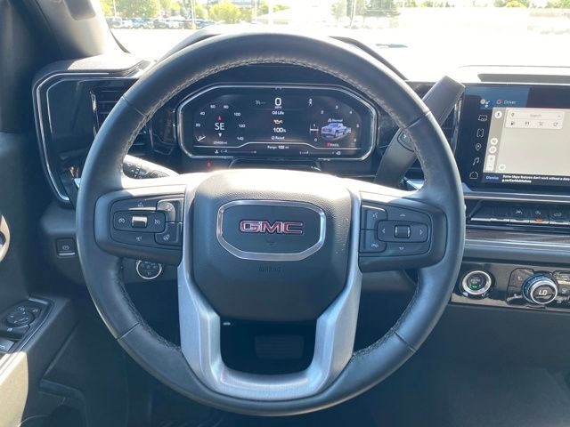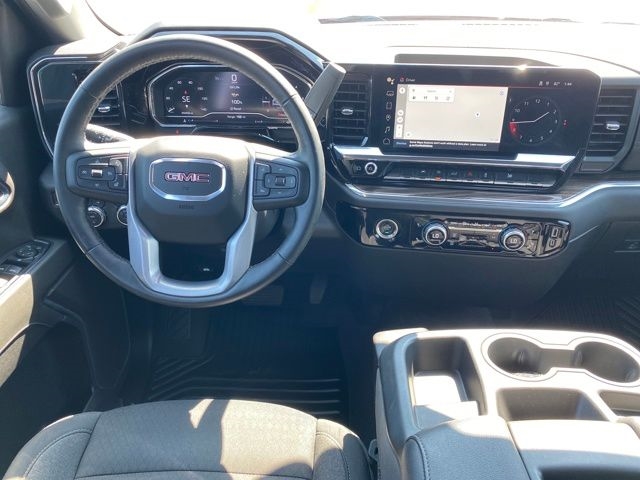 10-Way Power Driver Seat Adjuster w/Lumbar, 120-Volt Bed Mounted Power Outlet, 120-Volt Interior Power Outlet, 2 Charge/Data USB Ports, 2 Type-C Charge-Only Rear USB Ports, 220 Amp Alternator, 3.42 Rear Axle Ratio, 4-Way Manual Passenger Seat Adjuster, 4-Wheel Disc Brakes, 6 Speakers, 6-Speaker Audio System Feature, ABS brakes, Air Conditioning, Alloy wheels, AM/FM radio: SiriusXM with 360L, Apple CarPlay/Android Auto, Auto High-beam Headlights, Auto-Locking Rear Differential, Automatic Emergency Braking, Automatic temperature control, Body Color Header w/Gloss Black Mesh Grille Bars, Brake assist, Buckle to Drive, Bumpers: body-color, Cloth Seat Trim, Color-Keyed Carpeting Floor Covering, Compass, Deep-Tinted Glass, Delay-off headlights, Driver door bin, Driver vanity mirror, Dual front impact airbags, Dual front side impact airbags, Electric Rear-Window Defogger, Electronic Stability Control, Following Distance Indicator, Forward Collision Alert, Front 40/20/40 Split-Bench Seat, Front anti-roll bar, Front Center Armrest w/Storage, Front dual zone A/C, Front fog lights, Front Frame-Mounted Black Recovery Hooks, Front Pedestrian Braking, Front reading lights, Front Rubberized-Vinyl Floor Mats, Front wheel independent suspension, Fully automatic headlights, Genuine wood dashboard insert, GMC Connected Access Capable, HD Rear Vision Camera, Heated door mirrors, Heated Driver & Front Outboard Passenger Seating, Heated front seats, Heated steering wheel, High Capacity Suspension Package, Hitch Guidance, Illuminated entry, IntelliBeam Automatic High Beam On/Off, Keyless Open & Start, Lane Keep Assist w/Lane Departure Warning, LED Cargo Area Lighting, Low tire pressure warning, Manual Tilt-Wheel & Telescoping Steering Column, Navigation System, Occupant sensing airbag, OnStar & GMC Connected Services Capable, Outside temperature display, Overhead airbag, Overhead console, Panic alarm, Passenger door bin, Passenger vanity mirror, Power Door Locks, Power door mirrors, Power driver seat, Power Front Windows w/Driver Express Up/Down, Power Front Windows w/Passenger Express Down, Power Rear Windows w/Express Down, Power steering, Power windows, Preferred Equipment Group 3VL, Premium audio system: GMC Infotainment System, Push Button Start, Radio data system, Radio: Premium GMC Infotainment Audio System, Rear reading lights, Rear Rubberized-Vinyl Floor Mats, Rear step bumper, Rear window defroster, Remote keyless entry, Remote Vehicle Starter System, Security system, SiriusXM w/360L, Speed control, Speed-sensing steering, Split folding rear seat, Standard Tailgate, Steering Wheel Audio Controls, Steering wheel mounted audio controls, Tachometer, Telescoping steering wheel, Theft Deterrent System (Unauthorized Entry), Tilt steering wheel, Traction control, Trailering Package, Trip computer, Variably intermittent wipers, Voltmeter, Wheels: 20" x 9" High Gloss Black Painted Aluminum, Wi-Fi Hotspot Capable, Wireless Apple CarPlay/Wireless Android Auto.