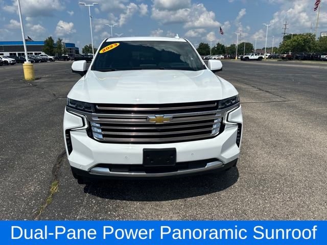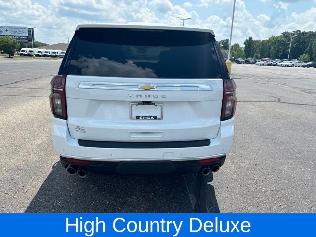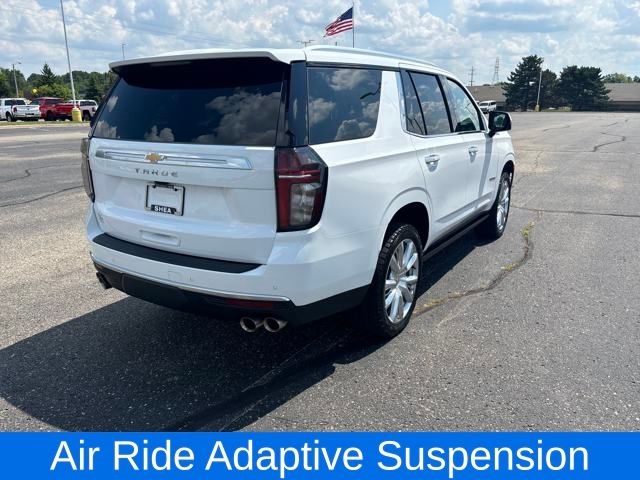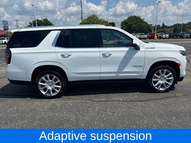 Adaptive suspension, Air Ride Adaptive Suspension, Apple CarPlay/Android Auto, Driver & Front Outboard Passenger Airbags, Dual Exhaust System, Dual-Pane Power Panoramic Sunroof, Exterior Parking Camera Rear, Heated & Ventilated Driver & Front Passenger Seats, High Country Deluxe, Navigation System, Power Liftgate, Power-Retractable Assist Steps, Speed control, 10 Speakers, 15" Diagonal Multi-Color Head-Up Display, 1st & 2nd Row Color-Keyed Carpeted Floor Mats, 2-Speed Active Electronic AutoTrac Transfer Case, 3.23 Rear Axle Ratio, 3rd Row 60/40 Power-Folding Split-Bench Seat, 3rd row seats: split-bench, 4-Wheel Disc Brakes, ABS brakes, Air Conditioning, Alloy wheels, AM/FM radio: SiriusXM with 360L, Auto High-beam Headlights, Auto-dimming door mirrors, Auto-dimming Rear-View mirror, Auto-leveling suspension, Automatic temperature control, Bose 10-Speaker Centerpoint Surround Audio Sys Ft, Brake assist, Bright Front & Rear Door Sill Plates, Bumpers: body-color, Chrome Door Handles w/Body-Color Strip, Color-Keyed Carpeting Floor Covering, Compass, Delay-off headlights, Driver door bin, Driver vanity mirror, Dual front impact airbags, Dual front side impact airbags, Electronic Stability Control, Emergency communication system: OnStar and Chevrolet connected services capable, Enhanced Automatic Emergency Braking, Enhanced Driver Information Center, Floor Console, Four wheel independent suspension, Front anti-roll bar, Front Bucket Seats, Front Center Armrest, Front dual zone A/C, Front High-Back Reclining Bucket Seats, Front reading lights, Fully automatic headlights, Garage door transmitter, Hands-Free Rear Power Programmable Liftgate, HD Surround Vision, Heads-Up Display, Heated 2nd Row Outboard Seats, Heated door mirrors, Heated Driver & Front Passenger Seats, Heated front seats, Heated rear seats, Heated Steering Wheel, Heated steering wheel, Hill Descent Control, Illuminated entry, Infotainment Display, Inside Rearview Auto-Dimming Rear Camera Mirror, Lane Change Alert w/Side Blind Zone Alert, LED Daytime Running Lamps, Low tire pressure warning, Magnetic Ride Control Suspension, Memory seat, Memory Settings, Occupant sensing airbag, Outside Heated Power-Adjustable Mirrors, Outside temperature display, Overhead airbag, Overhead console, Panic alarm, Passenger door bin, Passenger vanity mirror, Perforated Leather Seat Trim, Power door mirrors, Power driver seat, Power passenger seat, Power Release 2nd Row Bucket Seats, Power steering, Power Tilt & Telescopic Steering Column, Power windows, Premium audio system: Chevrolet Infotainment 3 Premium, Radio: Chevrolet Infotainment 3 Premium System, Rain sensing wipers, Rear air conditioning, Rear anti-roll bar, Rear Camera Mirror Washer, Rear Cross Traffic Alert, Rear Pedestrian Alert, Rear reading lights, Rear window defroster, Rear window wiper, Remote keyless entry, Remote Start, Roof rack: rails only, Safety Alert Seat, Security system, Set of 4 Wheel Locks (LPO), SiriusXM Radio w/360L, Speed-sensing steering, Split folding rear seat, Spoiler, Steering wheel memory, Steering wheel mounted audio controls, Tachometer, Telescoping steering wheel, Tilt steering wheel, Traction control, Trip computer, Turn signal indicator m