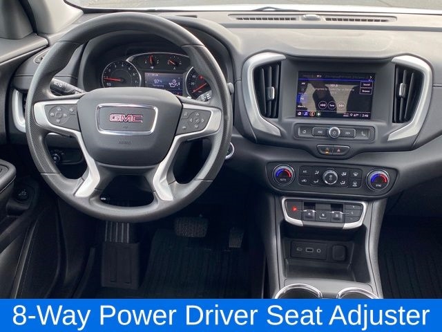 8-Way Power Driver Seat Adjuster, Driver & Front Passenger Heated Seats, Driver Convenience Package, Dual-Zone Automatic Climate Control, Floor Liner Package (LPO), Front & Rear All-Weather Floor Liners (LPO), Integrated Cargo Liner (LPO), Power Programmable Rear Liftgate, Remote Start, Roof-Mounted Luggage Rack Side Rails, Speed control, 2 USB Data Ports w/Auxiliary Input Jack, 3.47 Final Drive Axle Ratio, 4-Way Manual Driver's Seat, 4-Way Manual Front Passenger Seat, 4-Wheel Disc Brakes, 4.2" Multi-Color Driver Information Screen, 6 Speakers, 6-Speaker Audio System Feature, ABS brakes, Air Conditioning, Alloy wheels, AM/FM radio: SiriusXM, Auto High-beam Headlights, Auto-dimming Rear-View mirror, Automatic temperature control, Bluetooth® For Phone, Brake assist, Bumpers: body-color, Cold Air Grille Shutter, Compass, Delay-off headlights, Driver door bin, Driver vanity mirror, Dual front impact airbags, Dual front side impact airbags, Electronic Stability Control, Emergency communication system: OnStar and GMC connected services capable, Four wheel independent suspension, Front anti-roll bar, Front Bucket Seats, Front Center Armrest, Front reading lights, Fully automatic headlights, Heated door mirrors, Illuminated entry, Low tire pressure warning, Occupant sensing airbag, Outside temperature display, Overhead airbag, Overhead console, Panic alarm, Passenger door bin, Passenger vanity mirror, Power door mirrors, Power Driver Lumbar Control, Power steering, Power windows, Preferred Equipment Group 3SA, Premium Cloth Seat Trim, Radio data system, Radio: GMC Infotainment Audio System w/7" Display, Rear anti-roll bar, Rear seat center armrest, Rear window defroster, Rear window wiper, Remote keyless entry, Security system, SiriusXM, Speed-sensing steering, Split folding rear seat, Spoiler, Steering wheel mounted audio controls, Tachometer, Telescoping steering wheel, Tilt steering wheel, Traction control, Trip computer, Variably intermittent wipers, Wheels: 17" x 7" Silver Painted Aluminum, Wireless Apple CarPlay/Wireless Android Auto, One Owner Clean Carfax, 8-Way Power Driver Seat Adjuster, Driver & Front Passenger Heated Seats, Driver Convenience Package, Dual-Zone Automatic Climate Control, Floor Liner Package (LPO), Front & Rear All-Weather Floor Liners (LPO), Integrated Cargo Liner (LPO), Power Programmable Rear Liftgate, Remote Start, Roof-Mounted Luggage Rack Side Rails, Speed control.