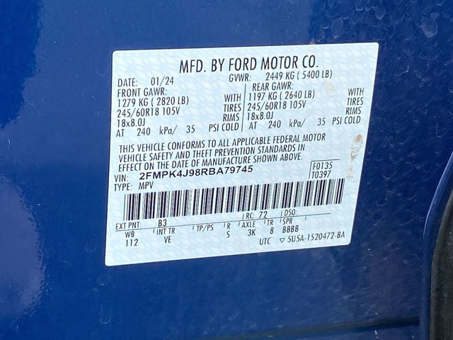 Equipment Group 201A, Speed control, Wheels: 18" Sparkle Silver-Painted Aluminum, 3.80 Axle Ratio, 4-Wheel Disc Brakes, 6 Speakers, ABS brakes, ActiveX Trimmed Heated Bucket Seats, Air Conditioning, Alloy wheels, AM/FM radio: SiriusXM with 360L, AM/FM Stereo, Auto High-beam Headlights, Auto-dimming Rear-View mirror, Automatic temperature control, Brake assist, Bumpers: body-color, Compass, Delay-off headlights, Driver door bin, Driver vanity mirror, Dual front impact airbags, Dual front side impact airbags, Electronic Stability Control, Emergency communication system: SYNC 4 911 Assist, FordPass Connect, Four wheel independent suspension, Front anti-roll bar, Front Bucket Seats, Front Center Armrest w/Storage, Front dual zone A/C, Front reading lights, Fully automatic headlights, Heated door mirrors, Heated front seats, Illuminated entry, Knee airbag, Leather steering wheel, Low tire pressure warning, Occupant sensing airbag, Outside temperature display, Overhead airbag, Overhead console, Panic alarm, Passenger door bin, Passenger vanity mirror, Power door mirrors, Power driver seat, Power Liftgate, Power passenger seat, Power steering, Power windows, Rear anti-roll bar, Rear Parking Sensors, Rear reading lights, Rear seat center armrest, Rear window defroster, Rear window wiper, Remote keyless entry, SiriusXM w/360L, Speed-Sensitive Wipers, Split folding rear seat, Spoiler, Steering wheel mounted audio controls, SYNC 4A w/Enhanced Voice Recognition, Tachometer, Telescoping steering wheel, Tilt steering wheel, Traction control, Trip computer, Variably intermittent wipers, Clean Carfax, ALL WHEEL DRIVE, Equipment Group 201A, Speed control, Wheels: 18" Sparkle Silver-Painted Aluminum.