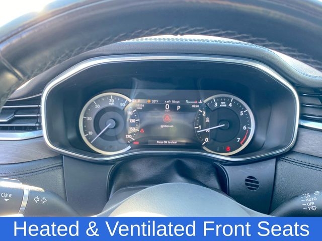 ABS brakes, Apple CarPlay/Android Auto, Front Fog Lights, Heated & Ventilated Front Seats, Navigation system: InControl Navigation Pro, Power Liftgate, Power moonroof, Radio: Meridian 380W Sound System, Speed control, Wheels: 19" 5 Spoke Gloss Black (Style 5103), 11 Speakers, 4-Wheel Disc Brakes, Adaptive suspension, Air Conditioning, Alloy wheels, AM/FM radio: SiriusXM, Auto High-beam Headlights, Auto-dimming door mirrors, Auto-dimming Rear-View mirror, Automatic temperature control, Axle Ratio: 3.73, Brake assist, Bumpers: body-color, Compass, Delay-off headlights, Driver door bin, Driver vanity mirror, Dual front impact airbags, Dual front side impact airbags, Electronic Stability Control, Emergency communication system: Remote SOS Emergency Call, Four wheel independent suspension, Front anti-roll bar, Front Bucket Seats, Front Center Armrest, Front dual zone A/C, Front reading lights, Fully automatic headlights, Garage door transmitter: HomeLink, Genuine wood dashboard insert, Genuine wood door panel insert, Grained Leather Seat Trim, Heated door mirrors, Heated Front Bucket Seats, Heated front seats, Illuminated entry, Leather Shift Knob, Leather steering wheel, Low tire pressure warning, Occupant sensing airbag, Outside temperature display, Overhead airbag, Overhead console, Panic alarm, Passenger door bin, Passenger vanity mirror, Power door mirrors, Power driver seat, Power passenger seat, Power steering, Power windows, Radio data system, Rain sensing wipers, Rear anti-roll bar, Rear fog lights, Rear reading lights, Rear seat center armrest, Rear window defroster, Rear window wiper, Remote keyless entry, Security system, Speed-sensing steering, Split folding rear seat, Spoiler, Steering wheel mounted audio controls, Tachometer, Telescoping steering wheel, Tilt steering wheel, Traction control, Trip computer, Turn signal indicator mirrors, Variably intermittent wipers, One Owner Clean Carfax, ALL WHEEL DRIVE, ABS brakes, Apple CarPlay/Android Auto, Front Fog Lights, Heated & Ventilated Front Seats, Navigation system: InControl Navigation Pro, Power Liftgate, Power moonroof, Radio: Meridian 380W Sound System, Speed control, Wheels: 19" 5 Spoke Gloss Black (Style 5103).