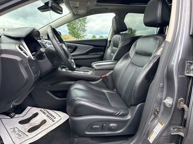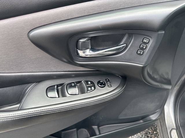 Navigation system: NissanConnect Navigation, 11 Speakers, 4-Wheel Disc Brakes, 4.667 Axle Ratio, ABS brakes, Air Conditioning, Alloy wheels, AM/FM radio: SiriusXM, AM/FM/CD/MP3/WMA Audio System, Auto High-beam Headlights, Auto-dimming Rear-View mirror, Automatic temperature control, Blind Spot Warning, Brake assist, Bumpers: body-color, CD player, Child-Seat-Sensing Airbag, Delay-off headlights, Driver door bin, Driver vanity mirror, Dual front impact airbags, Dual front side impact airbags, Electronic Stability Control, Exterior Parking Camera Rear, Four wheel independent suspension, Front anti-roll bar, Front Bucket Seats, Front Center Armrest, Front dual zone A/C, Front fog lights, Front reading lights, Fully automatic headlights, Garage door transmitter: HomeLink, Heated door mirrors, Heated Front Bucket Seats, Heated front seats, Heated rear seats, Heated steering wheel, Illuminated entry, Knee airbag, Leather-Appointed Seat Trim, Low tire pressure warning, Memory seat, NissanConnect featuring Apple CarPlay and Android Auto, Occupant sensing airbag, Outside temperature display, Overhead airbag, Overhead console, Panic alarm, Passenger door bin, Passenger vanity mirror, Power door mirrors, Power driver seat, Power Liftgate, Power passenger seat, Power steering, Power windows, Radio data system, Rear anti-roll bar, Rear reading lights, Rear seat center armrest, Rear side impact airbag, Rear window defroster, Rear window wiper, Remote keyless entry, Roof rack: rails only, Security system, Speed control, Speed-sensing steering, Speed-Sensitive Wipers, Split folding rear seat, Spoiler, Steering wheel mounted audio controls, Tachometer, Telescoping steering wheel, Tilt steering wheel, Traction control, Trip computer, Turn signal indicator mirrors, Variably intermittent wipers, Wheels: 20" Machined Aluminum-Alloy, Navigation system: NissanConnect Navigation.