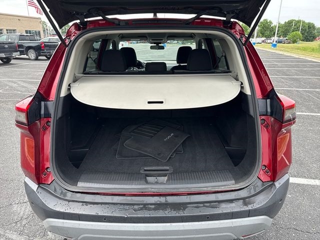 AWD, 4 Speakers, 4-Wheel Disc Brakes, 5.604 Axle Ratio, ABS brakes, Air Conditioning, Alloy wheels, AM/FM radio: SiriusXM, Auto High-beam Headlights, Blind Spot Warning, Brake assist, Cloth Seat Trim, Delay-off headlights, Driver door bin, Driver vanity mirror, Dual front impact airbags, Dual front side impact airbags, Electronic Stability Control, Four wheel independent suspension, Front anti-roll bar, Front Bucket Seats, Front reading lights, Fully automatic headlights, Illuminated entry, Knee airbag, Low tire pressure warning, NissanConnect featuring Apple CarPlay and Android Auto, Occupant sensing airbag, Outside temperature display, Overhead airbag, Overhead console, Panic alarm, Passenger door bin, Passenger vanity mirror, Power door mirrors, Power steering, Power windows, Radio data system, Rear anti-roll bar, Rear Parking Sensors, Rear side impact airbag, Rear window defroster, Rear window wiper, Remote keyless entry, Speed control, Speed-Sensitive Wipers, Split folding rear seat, Spoiler, Steering wheel mounted audio controls, Tachometer, Telescoping steering wheel, Tilt steering wheel, Traction control, Trip computer, Variably intermittent wipers, AWD.