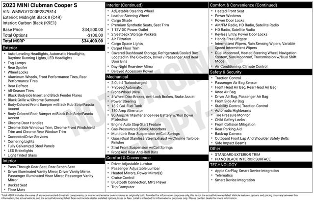 CARFAX One-Owner. Clean CARFAX. Clubman 2.0L I4 DOHC Turbocharged 7-Speed Automatic FWD Midnight Black