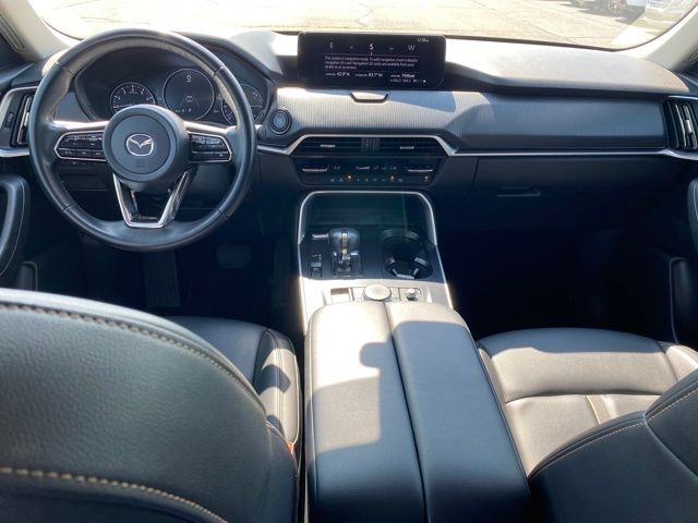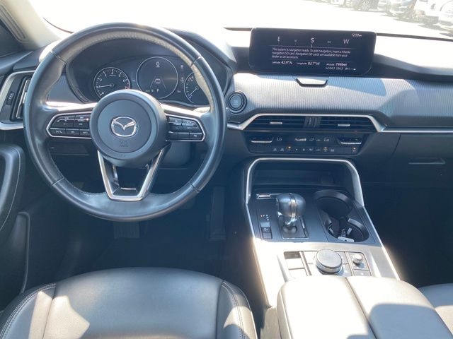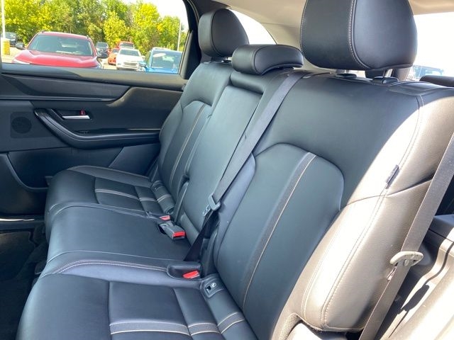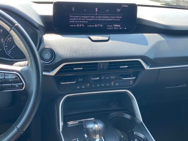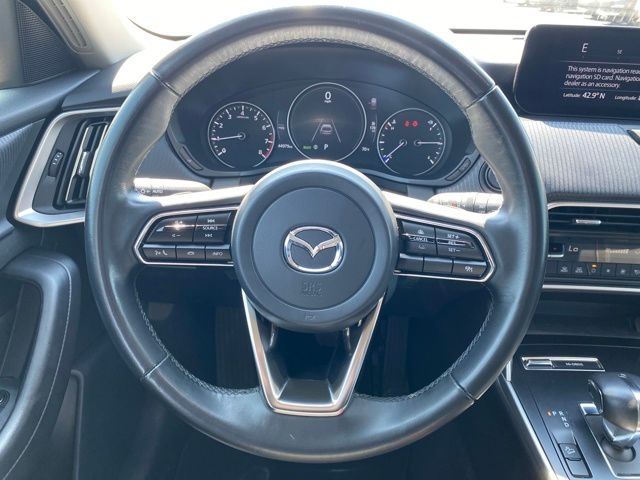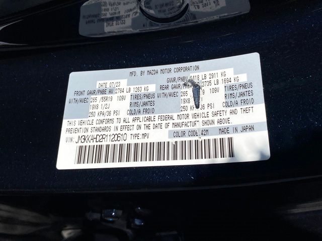 3.692 Axle Ratio, 3rd row seats: bench, 4-Wheel Disc Brakes, 8 Speakers, ABS brakes, Air Conditioning, Alloy wheels, AM/FM radio, AppLink/Apple CarPlay and Android Auto, Auto High-beam Headlights, Automatic temperature control, Brake assist, Bumpers: body-color, Compass, Delay-off headlights, Driver door bin, Driver vanity mirror, Dual front impact airbags, Dual front side impact airbags, E911 Automatic Emergency Notification, Electronic Stability Control, Emergency communication system: MAZDA CONNECT, Exterior Parking Camera Rear, Four wheel independent suspension, Front anti-roll bar, Front Bucket Seats, Front Center Armrest w/Storage, Front dual zone A/C, Front reading lights, Fully automatic headlights, Heated door mirrors, Illuminated entry, Infotainment System Voice Command, Knee airbag, Leather Shift Knob, Leather steering wheel, Leatherette Seat Trim, Low tire pressure warning, Mazda Connected Services, Occupant sensing airbag, Outside temperature display, Overhead airbag, Overhead console, Pandora Internet Radio Integration, Panic alarm, Passenger door bin, Passenger vanity mirror, Power door mirrors, Power driver seat, Power Liftgate, Power steering, Power windows, Radio Broadcast Data System Program Information, Radio data system, Radio: AM/FM Sound System, Rain sensing wipers, Rear air conditioning, Rear anti-roll bar, Rear reading lights, Rear seat center armrest, Rear window defroster, Rear window wiper, Remote keyless entry, SMS Text Msg Audio Delivery & Reply, Speed control, Speed-sensing steering, Split folding rear seat, Spoiler, Steering wheel mounted audio controls, Tachometer, Telescoping steering wheel, Tilt steering wheel, Traction control, Trip computer, Turn signal indicator mirrors, Variably intermittent wipers, Wheels: 19" x 8.5J Aluminum Alloy.