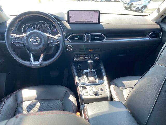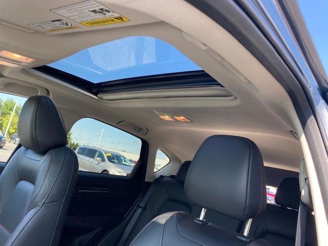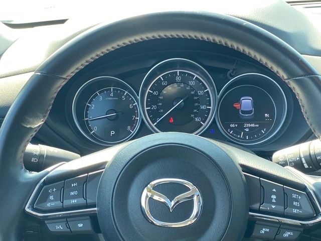 Infotainment System Voice Command, 10 Speakers, 4-Wheel Disc Brakes, 4.624 Axle Ratio, ABS brakes, Air Conditioning, Alloy wheels, AM/FM radio, AppLink/Apple CarPlay and Android Auto, Auto High-beam Headlights, Auto-dimming Rear-View mirror, Automatic temperature control, Brake assist, Bumpers: body-color, Delay-off headlights, Driver door bin, Driver vanity mirror, Dual front impact airbags, Dual front side impact airbags, E911 Automatic Emergency Notification, Electronic Stability Control, Emergency communication system: MAZDA CONNECT, Exterior Parking Camera Rear, Four wheel independent suspension, Front anti-roll bar, Front Bucket Seats, Front Center Armrest w/Storage, Front dual zone A/C, Front reading lights, Fully automatic headlights, Garage door transmitter: HomeLink, Heated Front Bucket Seats, Heated front seats, Illuminated entry, Leather Seat Trim, Leather Shift Knob, Leather steering wheel, Low tire pressure warning, Memory seat, Multifunction Commander Control, Occupant sensing airbag, Outside temperature display, Overhead airbag, Overhead console, Pandora, Panic alarm, Passenger door bin, Passenger vanity mirror, Power door mirrors, Power driver seat, Power Liftgate, Power moonroof, Power passenger seat, Power steering, Power windows, Radio Broadcast Data System Program Information, Radio data system, Radio: AM/FM/HD Audio System, Rain sensing wipers, Rear anti-roll bar, Rear reading lights, Rear seat center armrest, Rear window defroster, Rear window wiper, Remote keyless entry, SMS Text Msg Audio Delivery & Reply, Speed control, Speed-sensing steering, Split folding rear seat, Spoiler, Steering wheel mounted audio controls, Tachometer, Telescoping steering wheel, Tilt steering wheel, Traction control, Trip computer, Turn signal indicator mirrors, Variably intermittent wipers, Wheels: 19" x 7J Aluminum Alloy, Infotainment System Voice Command.