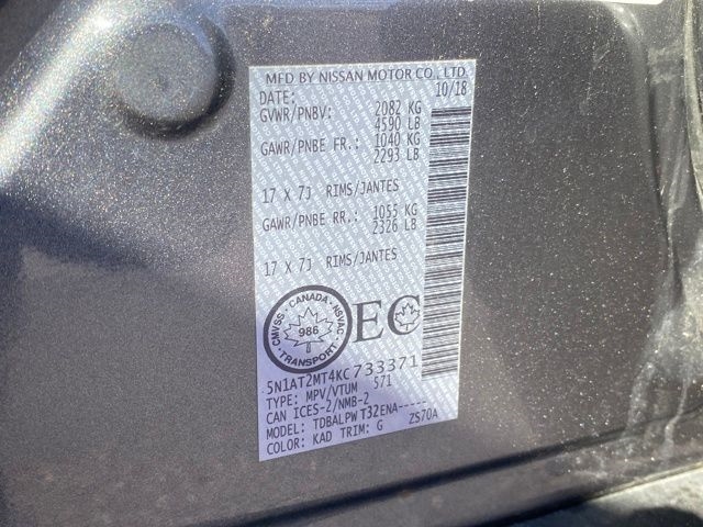 Heated front seats, Power Liftgate, Power steering, Power windows, Radio: AM/FM/CD/AUX NissanConnect w/Navigation, Rear Parking Sensors, Remote keyless entry, Speed control, 17" Aluminum Alloy Wheels, 4-Wheel Disc Brakes, 6 Speakers, 6.386 Axle Ratio, ABS brakes, Air Conditioning, Alloy wheels, AM/FM radio: SiriusXM, Anti-whiplash front head restraints, Auto High-beam Headlights, Automatic temperature control, Blind Spot Warning, Brake assist, Bumpers: body-color, CD player, Cloth Seat Trim, Delay-off headlights, Driver door bin, Driver vanity mirror, Dual front impact airbags, Dual front side impact airbags, Electronic Stability Control, Four wheel independent suspension, Front anti-roll bar, Front Bucket Seats, Front Center Armrest w/Storage, Front dual zone A/C, Front reading lights, Fully automatic headlights, Heated door mirrors, Heated Front Bucket Seats, Illuminated entry, Leather Shift Knob, Low tire pressure warning, NissanConnect featuring Apple CarPlay and Android Auto, Occupant sensing airbag, Outside temperature display, Overhead airbag, Overhead console, Panic alarm, Passenger door bin, Passenger vanity mirror, Power door mirrors, Power driver seat, Radio data system, Radio: AM/FM/CD/AUX, Rear anti-roll bar, Rear seat center armrest, Rear window defroster, Rear window wiper, Roof rack: rails only, Security system, Speed-sensing steering, Split folding rear seat, Spoiler, Steering wheel mounted audio controls, Tachometer, Telescoping steering wheel, Tilt steering wheel, Traction control, Trip computer, Turn signal indicator mirrors, Variably intermittent wipers, Heated front seats, Power Liftgate, Power steering, Power windows, Radio: AM/FM/CD/AUX NissanConnect w/Navigation, Rear Parking Sensors, Remote keyless entry, Speed control.