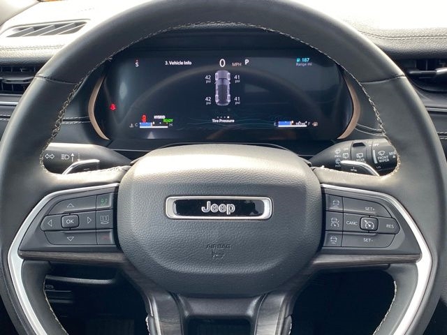 Navigation System, 10 Speakers, 3.70 Rear Axle Ratio, 4-Wheel Disc Brakes, ABS brakes, Air Conditioning, Alloy wheels, AM/FM radio: SiriusXM with 360L, Anti-whiplash front head restraints, Audio memory, Auto High-beam Headlights, Automatic temperature control, Brake assist, Bumpers: body-color, Capri Leatherette Seats, Compass, Delay-off headlights, Driver door bin, Driver vanity mirror, Dual front impact airbags, Dual front side impact airbags, Electronic Stability Control, Four wheel independent suspension, Front anti-roll bar, Front Bucket Seats, Front Center Armrest w/Storage, Front dual zone A/C, Front fog lights, Front License Plate Bracket, Front reading lights, Fully automatic headlights, Garage door transmitter, Heated door mirrors, Heated front seats, Heated rear seats, Heated steering wheel, Heavy Duty Suspension, Illuminated entry, Knee airbag, Low tire pressure warning, Memory seat, Occupant sensing airbag, Outside temperature display, Overhead airbag, Overhead console, Panic alarm, ParkView Rear Back-Up Camera, Passenger door bin, Passenger vanity mirror, Power door mirrors, Power driver seat, Power Liftgate, Power moonroof, Power passenger seat, Power steering, Power windows, Quick Order Package 27F, Radio data system, Radio: Uconnect 5 Nav w/10.1" Display, Rear anti-roll bar, Rear reading lights, Rear window defroster, Rear window wiper, Remote keyless entry, Security system, Speed control, Speed-Sensitive Wipers, Split folding rear seat, Spoiler, Steering wheel mounted audio controls, Tachometer, Telescoping steering wheel, Tilt steering wheel, Traction control, Trip computer, Turn signal indicator mirrors, Variably intermittent wipers, Voltmeter, Wheels: 18" x 8" Fully Painted Aluminum, Navigation System.