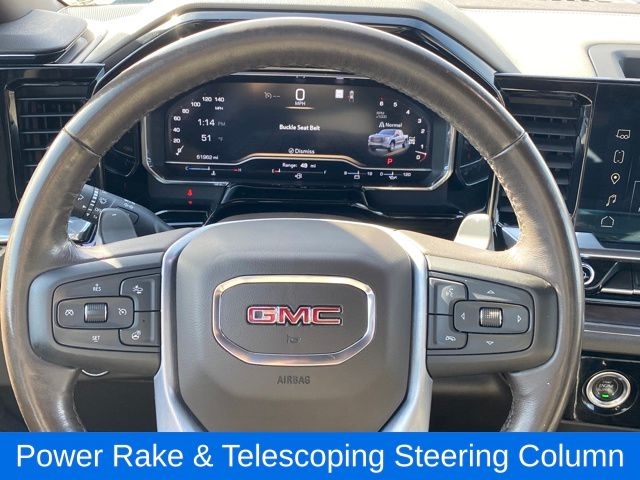 20" Polished Aluminum Wheels, Chrome Wheel To Wheel Assist Steps, Floor-Mounted Center Console, Front Bucket Seats, High Capacity Suspension Package, Navigation System, Power Rake & Telescoping Steering Column, Premium Bose 7-Speaker Sound System, SLT Convenience Package, SLT Premium Package, Ventilated Driver & Front Passenger Seats, Wireless Charging, 10-Way Power Driver Seat Adjuster w/Lumbar, 10-Way Power Passenger Seat Adjuster w/Lumbar, 120-Volt Bed Mounted Power Outlet, 120-Volt Instrument Panel Power Outlet, 170 Amp Alternator, 2 Charge/Data USB Ports, 2 Charge/Data USB Ports Inside Center Console, 2 Type-C Charge-Only Rear USB Ports, 3.23 Rear Axle Ratio, 4-Wheel Disc Brakes, 6 Speakers, 6-Speaker Audio System Feature, ABS brakes, Air Conditioning, All-Weather Floor Liner (LPO), Alloy wheels, AM/FM radio, Apple CarPlay/Android Auto, Auto High-beam Headlights, Auto-dimming door mirrors, Auto-dimming Rear-View mirror, Auto-Locking Rear Differential, Automatic Emergency Braking, Automatic temperature control, Auxiliary External Transmission Oil Cooler, Brake assist, Buckle to Drive, Bumpers: chrome, Chrome Header & Chrome Grille Insert Bars, Color-Keyed Carpeting Floor Covering, Compass, Deep-Tinted Glass, Delay-off headlights, Driver door bin, Driver Memory, Driver vanity mirror, Dual front impact airbags, Dual front side impact airbags, Electric Rear-Window Defogger, Electrical Steering Column Lock, Electronic Precision Shift, Electronic Stability Control, Emergency communication system: OnStar and GMC connected services capable, Following Distance Indicator, Forward Collision Alert, Front 40/20/40 Split-Bench Seat, Front anti-roll bar, Front Center Armrest w/Storage, Front dual zone A/C, Front fog lights, Front Frame-Mounted Black Recovery Hooks, Front Pedestrian Braking, Front Rainsensing Wipers, Front reading lights, Front wheel independent suspension, Fully automatic headlights, GMC Connected Access Capable, HD Rear Vision Camera, Heated door mirrors, Heated Driver & Front Outboard Passenger Seating, Heated front seats, Heated steering wheel, Hitch Guidance, Illuminated entry, IntelliBeam Automatic High Beam On/Off, Keyless Open & Start, Lane Keep Assist w/Lane Departure Warning, LED Cargo Area Lighting, Low tire pressure warning, Manual Tilt-Wheel & Telescoping Steering Column, Memory seat, Not Equipped w/Steering Column Lock, Occupant sensing airbag, OnStar & GMC Connected Services Capable, Outside temperature display, Overhead airbag, Overhead console, Panic alarm, Passenger door bin, Passenger vanity mirror, Perf Leather-Appointed Front Outboard Seat Trim, Perimeter Lighting, Power Door Locks, Power door mirrors, Power driver seat, Power Front Passenger Windows w/Express Up/Down, Power Front Windows w/Driver Express Up/Down, Power passenger seat, Power Rear Windows w/Express Down, Power steering, Power windows, Preferred Equipment Group 4SA, Premium audio system: GMC Infotainment System, Push Button Start, Radio data system, Radio: Premium GMC Infotainment Audio System, Rain sensing wipers, Rear reading lights, Rear seat center armrest, Rear step bumper, Rear Wheelhouse Liners, Rear window defroster, Remote keyless entry, Remote Vehicle Starter System, Security system, SiriusXM w/360L, Speed