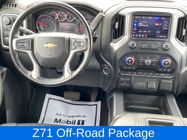 2 USB Ports (First Row), 2nd Row Heated Outboard Seats, All-Weather Floor Liner (LPO) (AAK), Chevytec Spray-On Black Bedliner, Floor Mounted Center Console, Front Bucket Seats, Hill Descent Control, LTZ Convenience Package, LTZ Plus Package, Off-Road Suspension, Power Sliding Rear Window w/Rear Defogger, Power Tailgate, Safety Package, Universal Home Remote, Ventilated Driver & Front Passenger Seats, Z71 Off-Road & Protection Package, Z71 Off-Road Package, 10-Way Power Driver Seat w/Lumbar, 10-Way Power Passenger Seat Adjuster w/Lumbar, 12-Volt Rear Auxiliary Power Outlet, 120-Volt Bed Mounted Power Outlet, 120-Volt Instrument Panel Power Outlet, 170 Amps Alternator, 3.23 Rear Axle Ratio, 4-Wheel Disc Brakes, 4.2" Diagonal Color Display Driver Info Center, 40/20/40 Front Split-Bench Seat, 4G LTE Wi-Fi Hot Spot Capable, 6 Speakers, 6-Speaker Audio System, ABS brakes, Advanced Trailering System, Air Conditioning, Alloy wheels, AM/FM radio: SiriusXM with 360L, Apple CarPlay/Android Auto, Auto-dimming door mirrors, Auto-Dimming Inside Rear-View Mirror, Auto-dimming Rear-View mirror, Automatic temperature control, Auxiliary External Transmission Oil Cooler, Bluetooth® For Phone, Brake assist, Bumpers: chrome, Chevrolet Connected Access Capable, Chrome Grille, Chrome Mirror Caps, Color-Keyed Carpeting Floor Covering, Compass, Deep-Tinted Glass, Delay-off headlights, Driver door bin, Driver Memory, Driver vanity mirror, Dual Exhaust w/Polished Outlets, Dual front impact airbags, Dual front side impact airbags, Electric Rear-Window Defogger, Electrical Lock Control Steering Column, Electronic Stability Control, EZ Lift Power Lock & Release Tailgate, Front anti-roll bar, Front Black Bowtie Emblem (LPO), Front Center Armrest w/Storage, Front dual zone A/C, Front fog lights, Front Frame-Mounted Black Recovery Hooks, Front LED Fog Lamps, Front reading lights, Front Rubberized Vinyl Floor Mats, Front wheel independent suspension, Fully automatic headlights, HD Radio, HD Rear Vision Camera, Heated door mirrors, Heated Driver & Front Outboard Passenger Seats, Heated front seats, Heated Steering Wheel, Heated steering wheel, Heavy Duty Suspension, Heavy-Duty Rear Locking Differential, High Capacity Air Filter, Hitch Guidance, Hitch Guidance w/Hitch View, Illuminated entry, Integrated Trailer Brake Controller, Keyless Open & Start, Lane Change Alert w/Side Blind Zone Alert, Leather Wrapped Steering Wheel, LED Cargo Area Lighting, Low tire pressure warning, Manual Tilt/Telescoping Steering Column, Memory seat, Occupant sensing airbag, OnStar & Chevrolet Connected Services Capable, Outside Heated Power-Adjustable Mirrors, Outside temperature display, Overhead airbag, Overhead console, Panic alarm, Passenger door bin, Passenger vanity mirror, Perforated Leather-Appointed Front Seat Trim, Perimeter Lighting, Power Door Locks, Power door mirrors, Power driver seat, Power Front Passenger Windows w/Express Up/Down, Power Front Windows w/Driver Express Up/Down, Power passenger seat, Power Rear Windows w/Express Down, Power steering, Power windows, Preferred Equipment Group 1LZ, Premium audio system: Chevrolet Infotainment 3 Plus, Radio data system, Radio: Chevrolet Infotainment 3 Plus System, Rear Cross Traffic Alert, Rear Dual USB Charging-Only Ports, Rear reading lights, Rear Rubberized-Vinyl Floor Mats, Rear seat center armrest, Rear step bumper, Rear Wheelhouse Liners, Rear window defroster, Remote keyless entry, Remote Vehicle Starter System, Security system, SiriusXM w/360L, Speed control, Speed-sensing steering, Split folding rear seat, Steering Wheel Audio Controls, Steering wheel mounted audio controls, Steering Wheel Mounted Electronic Cruise Control, Tachometer, Telescoping steering wheel, Theft Deterrent System (Unauthorized Entry), Tilt steering wheel, Traction control, Trailer