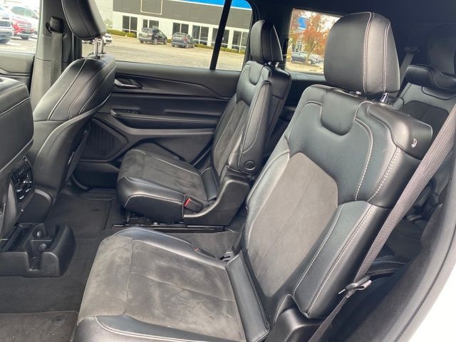 Altitude Appearance Package, 115V Auxiliary Power Outlet, 3.45 Rear Axle Ratio, 3rd Row Charge-Only USB Ports, 3rd row seats: split-bench, 4-Wheel Disc Brakes, 6 Speakers, ABS brakes, Air Conditioning, Alloy wheels, Anti-whiplash front head restraints, Automatic temperature control, Black Headliner, Brake assist, Bumpers: body-color, Capri Leatherette/Suede Seats, Cloth Seats, Compass, Delay-off headlights, Delete Laredo Badge, Driver door bin, Driver vanity mirror, Dual front impact airbags, Dual front side impact airbags, Electronic Stability Control, Emergency communication system, Four wheel independent suspension, Front anti-roll bar, Front Bucket Seats, Front Center Armrest w/Storage, Front dual zone A/C, Front License Plate Bracket, Front reading lights, Fully automatic headlights, Gloss Black Exterior Accents, Heated door mirrors, Heated Front Seats, Heated Steering Wheel, Illuminated entry, Knee airbag, Low tire pressure warning, Manual Fold Seatbacks, Normal Duty Suspension, Occupant sensing airbag, Outside temperature display, Overhead airbag, Overhead console, Panic alarm, ParkView Rear Back-Up Camera, Passenger door bin, Passenger vanity mirror, Power door mirrors, Power driver seat, Power Liftgate, Power steering, Power windows, Quick Order Package 23B Altitude, Radio data system, Radio: Uconnect 5 w/8.4" Display, Rain Sensitive Windshield Wipers, Rear air conditioning, Rear anti-roll bar, Rear reading lights, Rear window defroster, Rear window wiper, Reclining 3rd row seat, Remote keyless entry, Remote Start System, Security system, Selectable Tire Fill Alert, Speed control, Speed-Sensitive Wipers, Split folding rear seat, Spoiler, Steering wheel mounted audio controls, Tachometer, Telescoping steering wheel, Tilt steering wheel, Traction control, Trip computer, Variably intermittent wipers, Voltmeter, Wheels: 18" x 8.0" Fully Painted Aluminum, Wheels: 18" x 8.0" Fully Painted Aluminum 1, Wheels: 20" x 8.5" Gloss Black Painted Aluminum, Wireless Charging Pad, Altitude Appearance Package.
