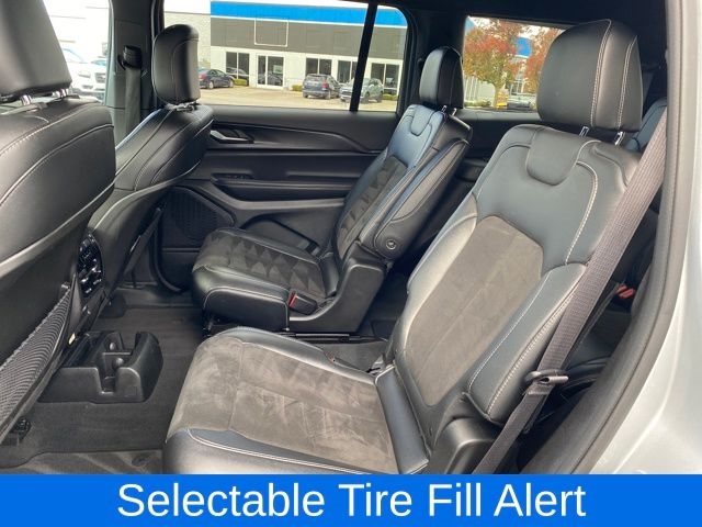 Experience the comfort and convenience of the Grand Cherokee L's spacious interior, with seating for up to seven passengers and ample cargo space. The premium Capri leatherette and suede seats, along with the 3rd-row charge-only USB ports and 115V auxiliary power outlet, ensure that everyone onboard can stay connected and comfortable.