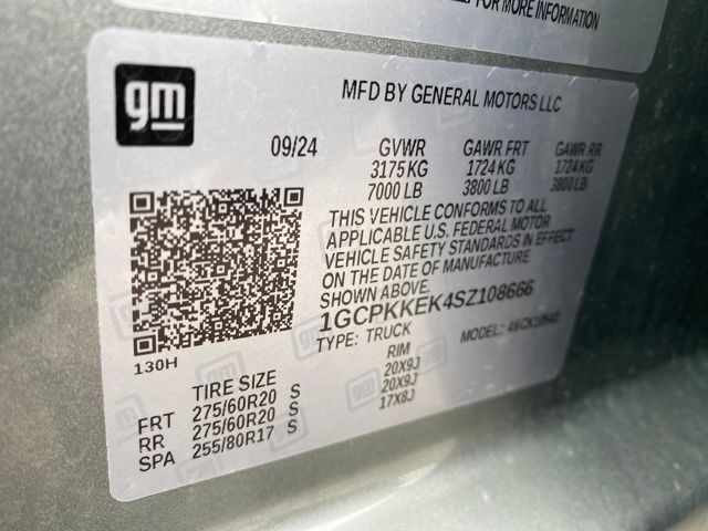 10-Way Power Driver Seat w/Lumbar, 120-Volt Interior Power Outlet, Convenience Package, Dual Rear USB Ports (Charge Only), Dual-Zone Automatic Climate Control, Heated Driver & Front Outboard Passenger Seats, Heated Steering Wheel, Keyless Open & Start, LED Cargo Area Lighting, Manual Tilt/Telescoping Steering Column, Wrapped Steering Wheel, 12.3" Multicolor Reconfigurable Digital Display, 120-Volt Bed Mounted Power Outlet, 3.42 Rear Axle Ratio, 4-Wheel Disc Brakes, 40/20/40 Front Split-Bench Seat, 6 Speakers, 6-Speaker Audio System, ABS brakes, Air Conditioning, All-Star Edition, Alloy wheels, AM/FM radio: SiriusXM with 360L, Apple CarPlay/Android Auto, Auto High-beam Headlights, Auto-Locking Rear Differential, Automatic Emergency Braking, Automatic temperature control, Bluetooth® For Phone, Brake assist, Bumpers: chrome, Chrome Mirror Caps, Cloth Seat Trim, Color-Keyed Carpeting Floor Covering, Compass, Deep-Tinted Glass, Delay-off headlights, Driver door bin, Driver vanity mirror, Dual front impact airbags, Dual front side impact airbags, Electric Rear-Window Defogger, Electronic Cruise Control, Electronic Stability Control, Emergency communication system: OnStar, Following Distance Indicator, Forward Collision Alert, Front anti-roll bar, Front Center Armrest w/Storage, Front dual zone A/C, Front Frame-Mounted Black Recovery Hooks, Front Pedestrian Braking, Front reading lights, Front wheel independent suspension, Fully automatic headlights, HD Rear Vision Camera, Heated door mirrors, Heated front seats, Heated steering wheel, High Capacity Suspension Package, Hitch Guidance, Illuminated entry, Integrated Trailer Brake Controller, IntelliBeam Automatic High Beam On/Off, Lane Keep Assist w/Lane Departure Warning, Low tire pressure warning, Occupant sensing airbag, OnStar Services Capable, Outside temperature display, Overhead airbag, Overhead console, Panic alarm, Passenger door bin, Passenger vanity mirror, Power door mirrors, Power driver seat, Power Front Windows w/Driver Express Up/Down, Power Front Windows w/Passenger Express Down, Power Rear Windows w/Express Down, Power steering, Power windows, Premium audio system: Chevrolet Infotainment 3 Premium, Radio data system, Radio: Chevrolet Infotainment 3 Premium System, Rear 60/40 Folding Bench Seat (Folds Up), Rear reading lights, Rear step bumper, Rear window defroster, Remote keyless entry, Remote Vehicle Starter System, Security system, SiriusXM w/360L Trial Subscription, Speed control, Speed-sensing steering, Split folding rear seat, Standard Suspension Package, Steering Wheel Audio Controls, Steering wheel mounted audio controls, Tachometer, Teen Driver, Telescoping steering wheel, Theft Deterrent System (Unauthorized Entry), Tilt steering wheel, Tire Pressure Monitoring System, Traction control, Trailering Package, Trip computer, Variably intermittent wipers, Voltmeter, Wheels: 18" x 8.5" Bright Silver Painted Aluminum, Wheels: 20" x 9" Painted Aluminum, Wi-Fi Hot Spot Capable, 10-Way Power Driver Seat w/Lumbar, 120-Volt Interior Power Outlet, Convenience Package, Dual Rear USB Ports (Charge Only), Dual-Zone Automatic Climate Control, Heated Driver & Front Outboard Passenger Seats, Heated Steering Wheel, Keyless Open & Start, LED Cargo Area Lig