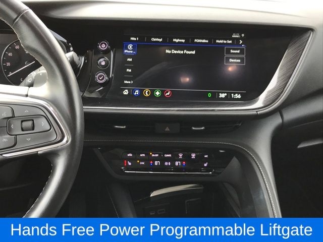 7-Speaker Audio System Feature w/Amplifier, Air Quality Indicator Sensor, Automatic Air Circulation/Air Quality Sensor, Comfort & Convenience Package, Dual-Zone ACC Air Conditioning, Hands Free Power Programmable Liftgate, Heated Driver & Front Passenger Seats, Heated Steering Wheel, Lane Change Alert w/Side Blind Zone Alert, Radio: Buick Infotainment System AM/FM Stereo, Rear Cross Traffic Alert, Remote Vehicle Starter System, Safety Package, 3 Years of OnStar & Connected Services Plan, 3.47 Final Drive Axle Ratio, 4-Wheel Disc Brakes, 6 Speakers, 6-Speaker Audio System Feature, 8-Way Power Driver Seat Adjuster, ABS brakes, Air Conditioning, Alloy wheels, AM/FM radio: SiriusXM, Apple CarPlay/Android Auto, Auto High-beam Headlights, Auto-dimming door mirrors, Auto-dimming Rear-View mirror, Brake assist, Bumpers: body-color, Cloth w/Leatherette Seat Trim, Compass, Delay-off headlights, Driver door bin, Driver vanity mirror, Dual front impact airbags, Dual front side impact airbags, Electronic Stability Control, Emergency communication system: OnStar and Buick connected services capable, Four wheel independent suspension, Front anti-roll bar, Front Bin Center Console USB Ports, Front Bucket Seats, Front Center Armrest, Front Passenger 6-Way Manual Seat Adjuster, Front reading lights, Fully automatic headlights, Heated door mirrors, Illuminated entry, Knee airbag, Low tire pressure warning, Not Equipped w/Driver & Fr Passenger Heated Seats, Not Equipped w/Rear Park Assist, Occupant sensing airbag, Outside temperature display, Overhead airbag, Overhead console, Panic alarm, Passenger door bin, Passenger vanity mirror, Power door mirrors, Power driver seat, Power steering, Power windows, Preferred Equipment Group 1SC, Premium audio system: Buick Infotainment System, Radio data system, Radio: 8" Diagonal Buick Infotainment System, Rear anti-roll bar, Rear reading lights, Rear seat center armrest, Rear window defroster, Rear window wiper, Remote keyless entry, Roof rack: rails only, Security system, SiriusXM Radio, Speed control, Split folding rear seat, Spoiler, Steering wheel mounted audio controls, Telescoping steering wheel, Tilt steering wheel, Traction control, Trip computer, USB Charging-Only Ports, Variably intermittent wipers, Wheels: 18" Aluminum w/Light Charcoal Met Finish, Wireless Apple CarPlay/Wireless Android Auto, 7-Speaker Audio System Feature w/Amplifier, Air Quality Indicator Sensor, Automatic Air Circulation/Air Quality Sensor, Comfort & Convenience Package, Dual-Zone ACC Air Conditioning, Hands Free Power Programmable Liftgate, Heated Driver & Front Passenger Seats, Heated Steering Wheel, Lane Change Alert w/Side Blind Zone Alert, Radio: Buick Infotainment System AM/FM Stereo, Rear Cross Traffic Alert, Remote Vehicle Starter System, Safety Package.