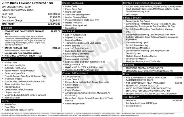 Elevate your commute with the impressive array of features that come standard on the Envision Preferred: